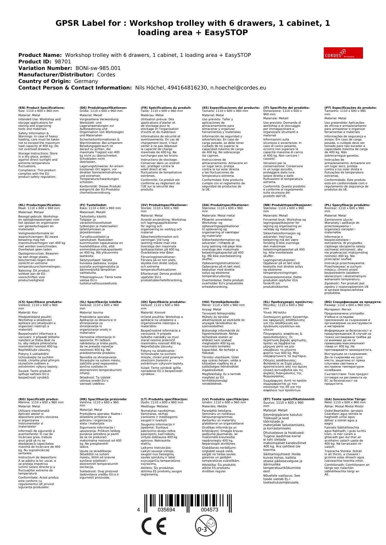 Cuireann ár gcarr siopa oibre an réiteach foirfe ar fáil chun d'uirlisí agus ábhair a eagrú. Le 6 tarraiceán, comh-aireachta agus dromchla luchtaithe praiticiúil, cinntíonn sé ord agus rochtain tapa ar gach rud atá uait do d'obair. Tá an carr siopa oibre láidir, soghluaiste agus oiriúnach le húsáid go laethúil i do cheardlann.