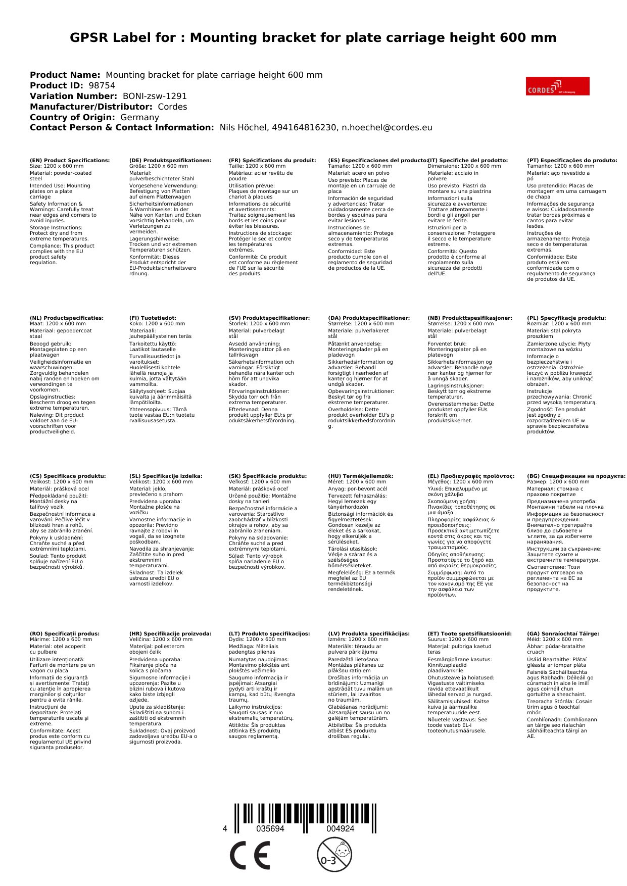 - Feistiú beacht: Le 1200 x 600 mm (W x H), luíonn Einsteckbügel go hidéalach le do tralaí pláta agus cinntíonn sé daingniú optamach.