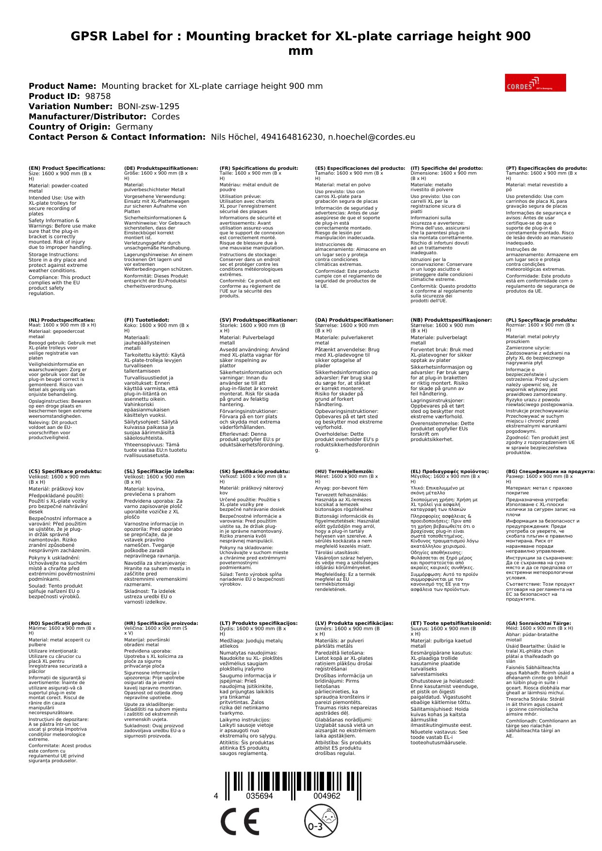- Optimale Größe: Mit den Abmessungen 1600 x 900 mm (B x H) ist der Einsteckbügel ideal für XL-Plattenwagen geeignet. Sie können große Platten sicher transportieren.