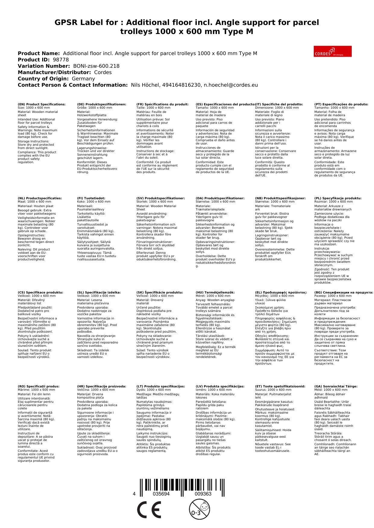 | Brand: | Cordes |