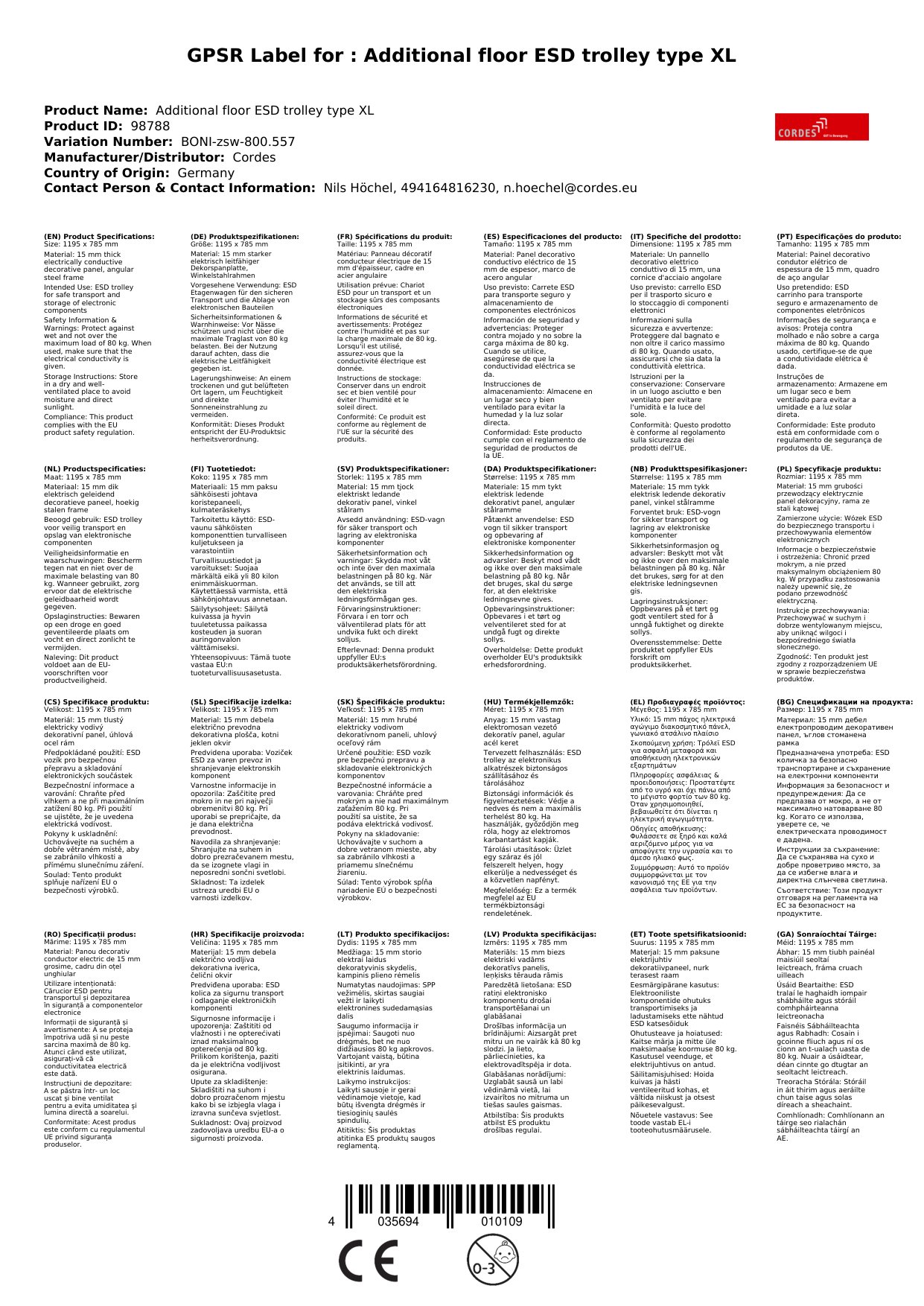 Bonn Breise ESD Etagenwagen Typ XL