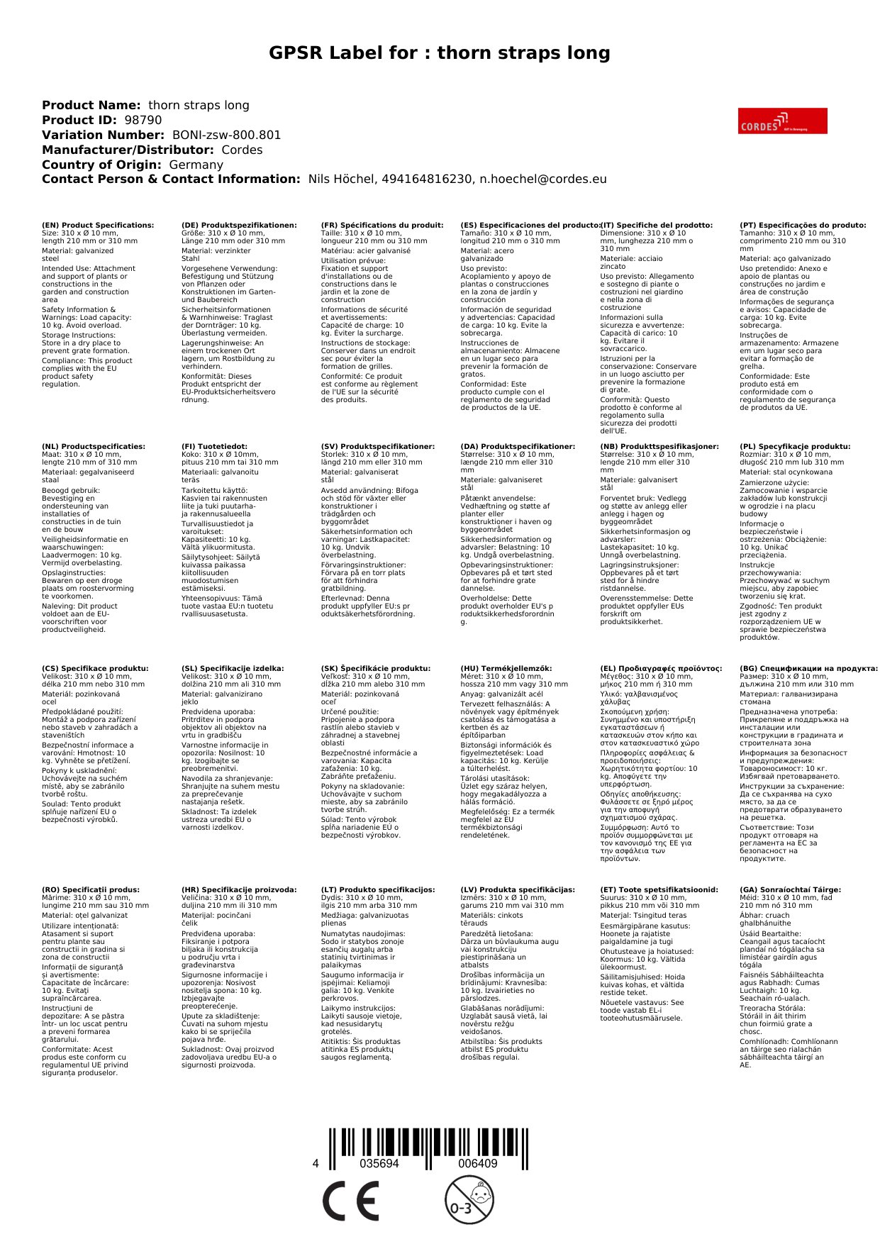 | Brand: | Cordes |