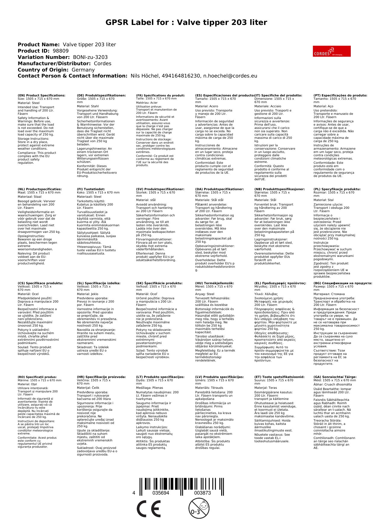 | Brand: | Cordes |