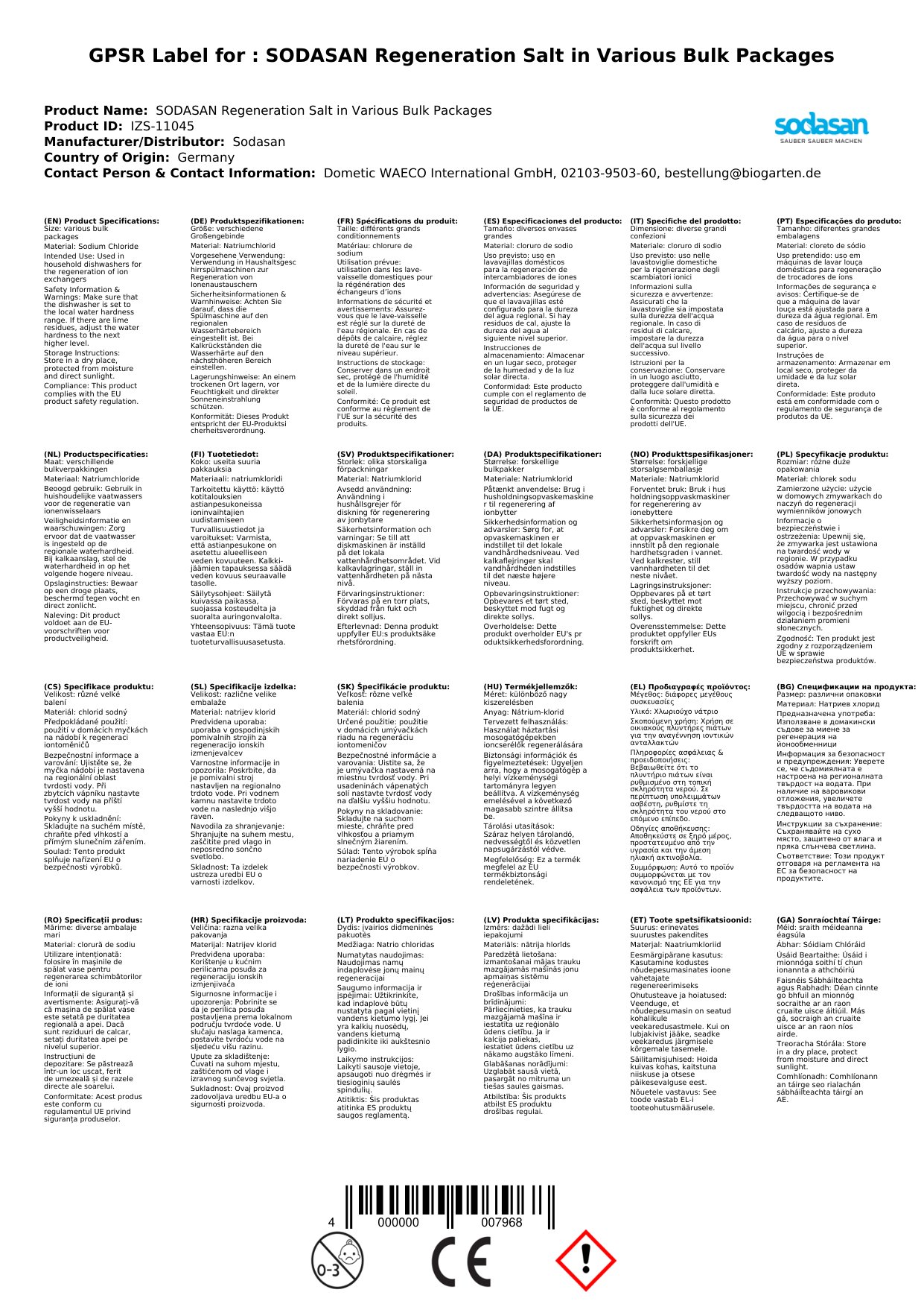 | Ainm Táirge | Salann Athghiniúna |