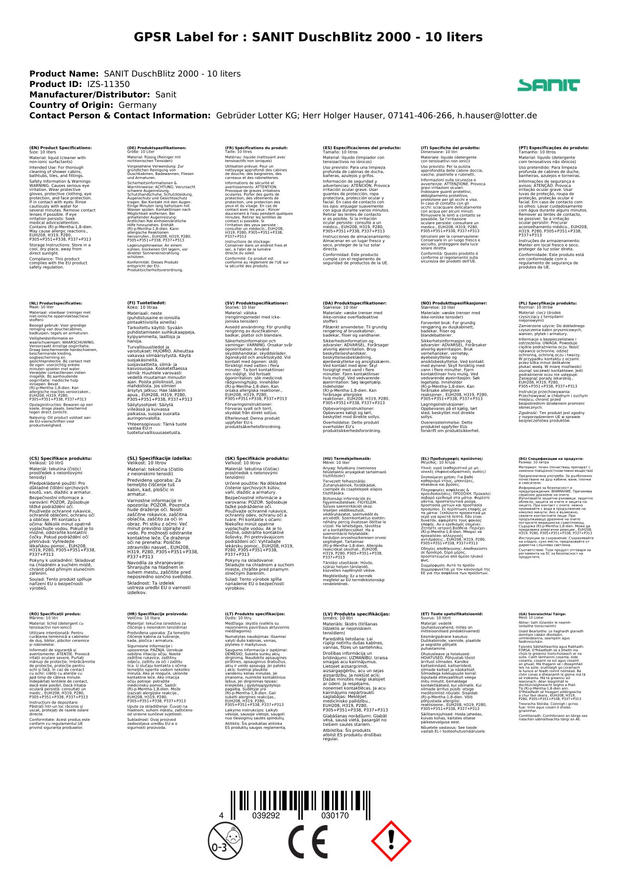 Nuair a cheannaíonn tú Glanadh Cithfholcadáin 10 Liter ónár siopa, gheobhaidh tú: