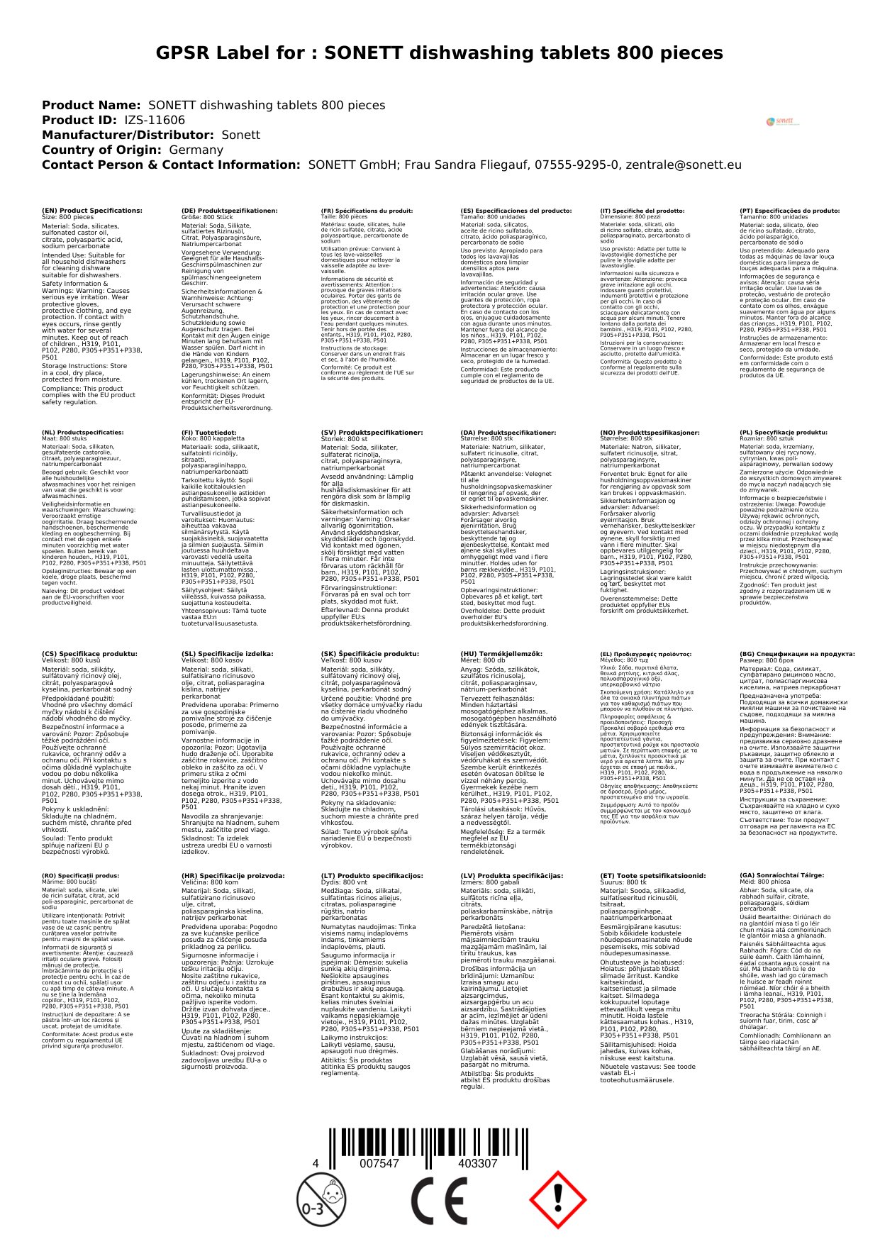 - P305/351/338 – MÁ BHAINEANN LE SÚILE: Sruthlaigh go cúramach le huisce ar feadh roinnt nóiméad. Bain lionsaí tadhaill, má tá siad i láthair agus éasca le déanamh. Lean ort ag sruthlú.