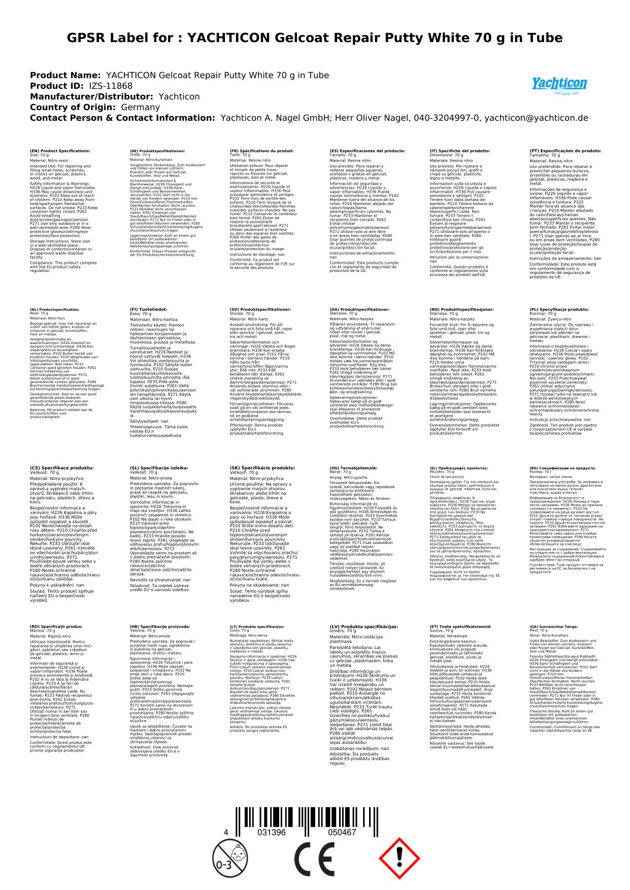 Tá an spachtla deisiúcháin gelcoat seo deartha go speisialta chun lochtanna beaga ar dhromchlaí báid a dheisiú. Tá sé éasca le cur i bhfeidhm óna fheadán spachtla áisiúil 70g. Cinntíonn an dath bán go mbeidh sé cumasc go foirfe le formhór na ndromchlaí gelcoat, ag tabhairt bailchríoch ghairmiúil duit. Déanann an comhdhéanamh gliú-bhunaithe an paiste láidir agus buan.