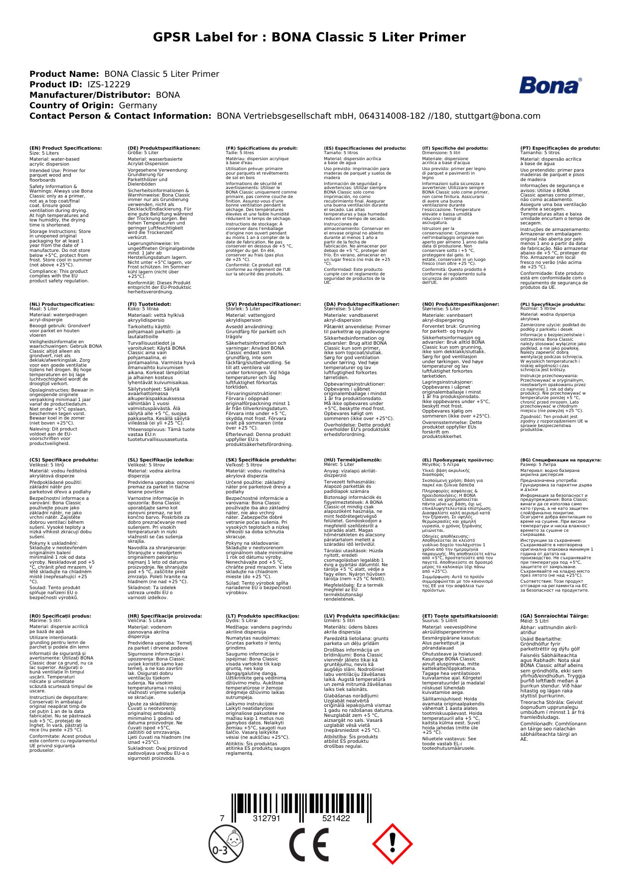 Cuir ceist chun níos mó a fhoghlaim faoin táirgeBona Classic 5 Liter, Grundierung, Primer adhmaid