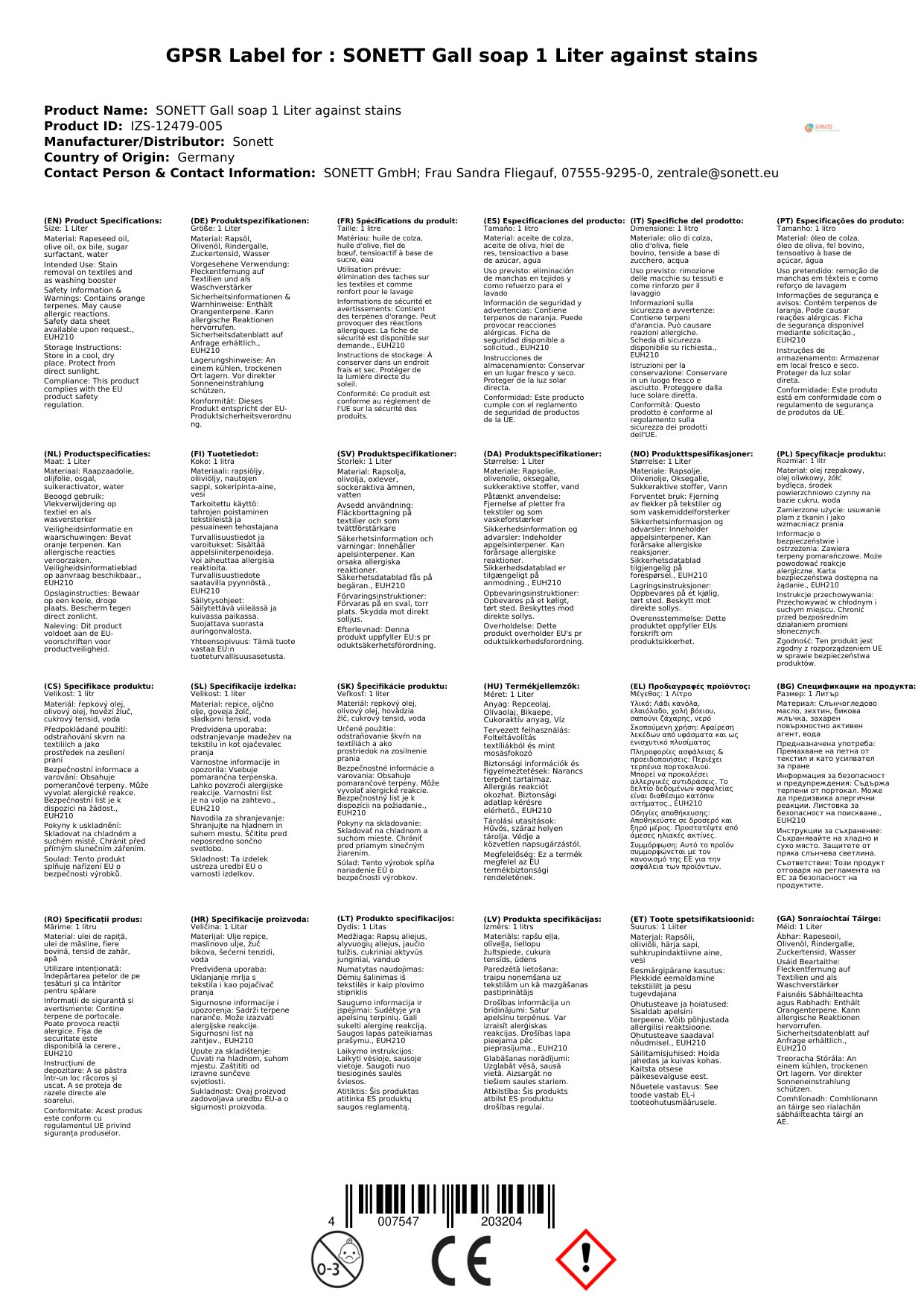 Cuir ceist chun níos mó a fhoghlaim faoin táirgeGallúnach galláin, Glanadh stain, Gallúnach nádúrtha, 1 Liter