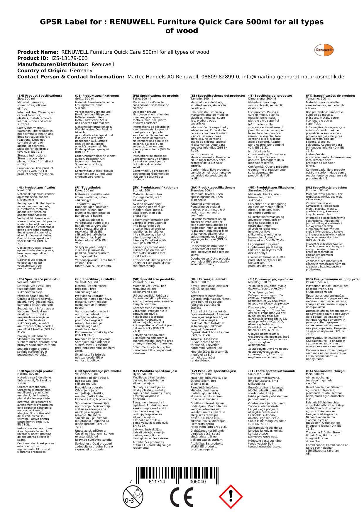 Cuir ceist chun níos mó a fhoghlaim faoin táirgeCúram tapa troscáin, 500ml, Snas troscáin, le haghaidh gach cineál adhmaid