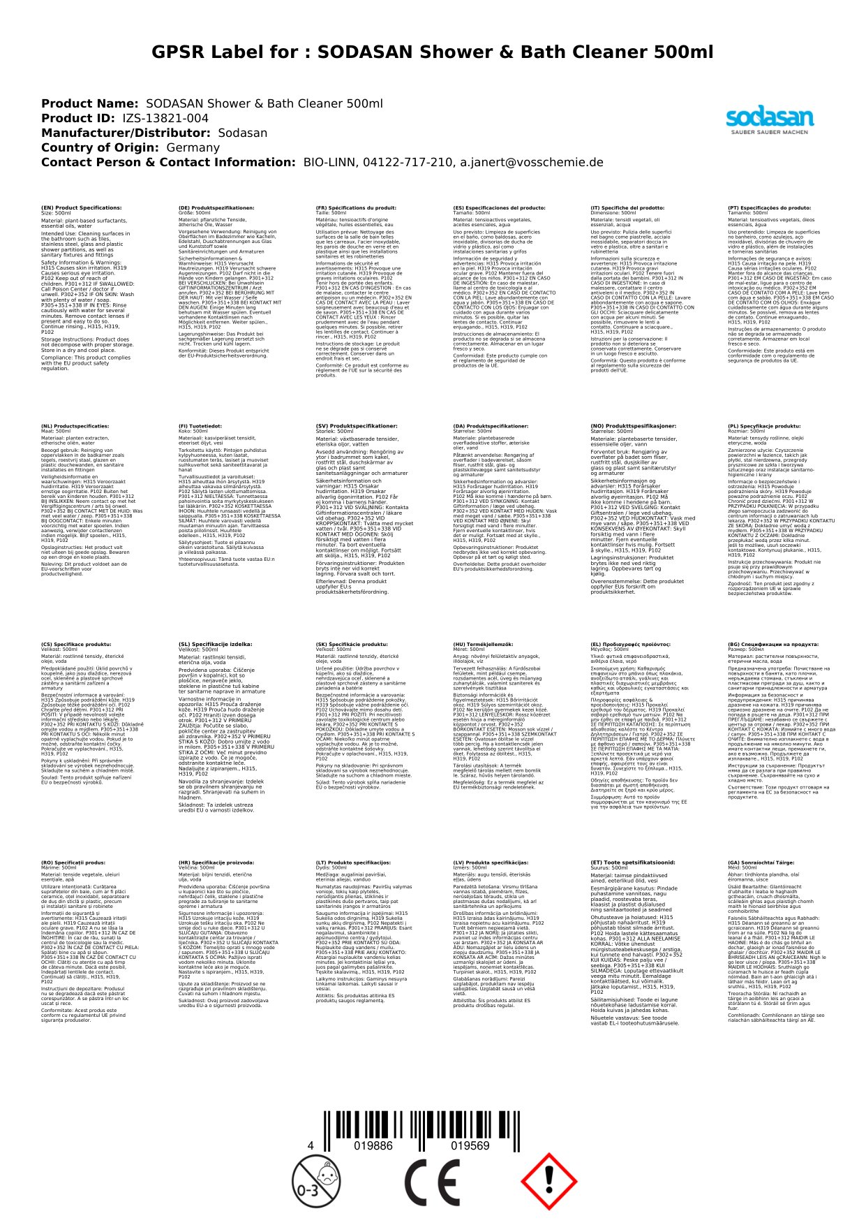 Tá Glanadh Cithfholcadáin Sodasan deartha chun cithfholcadáin agus folcadáin a ghlanadh go héifeachtach agus go nádúrtha. Tá sé bunaithe ar chomhábhair orgánacha agus nádúrtha, ag cinntiú nach bhfuil aon cheimiceáin gharbh ann. Cén fáth go bhfuil sé seo tábhachtach duit: Is féidir leat a bheith cinnte go bhfuil tú ag úsáid táirge sábháilte don timpeallacht agus do do theaghlach.