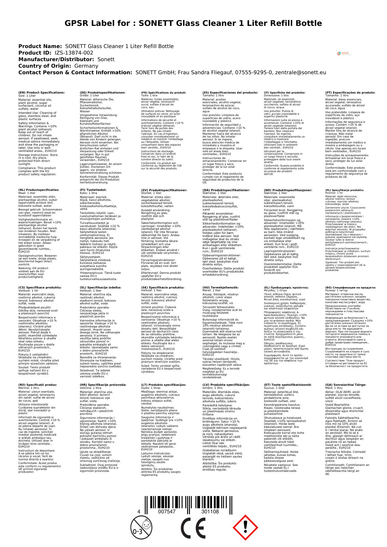 Tá an glantóir gloine nádúrtha seo deartha chun glaineacht gan stró a sholáthar. Leis an bhfoirmle éifeachtach 1 lítear, is féidir leat dromchlaí gloine a ghlanadh go héasca agus go tapa. Athlíonadh glantóir gloine atá neamhdhíobhálach don chomhshaol chun do theach a choinneáil glan agus slachtmhar. Tá sé sábháilte agus éifeachtach, ag cinntiú go bhfuil do chuid fuinneog agus gloine ag taitneamh i gcónaí.
