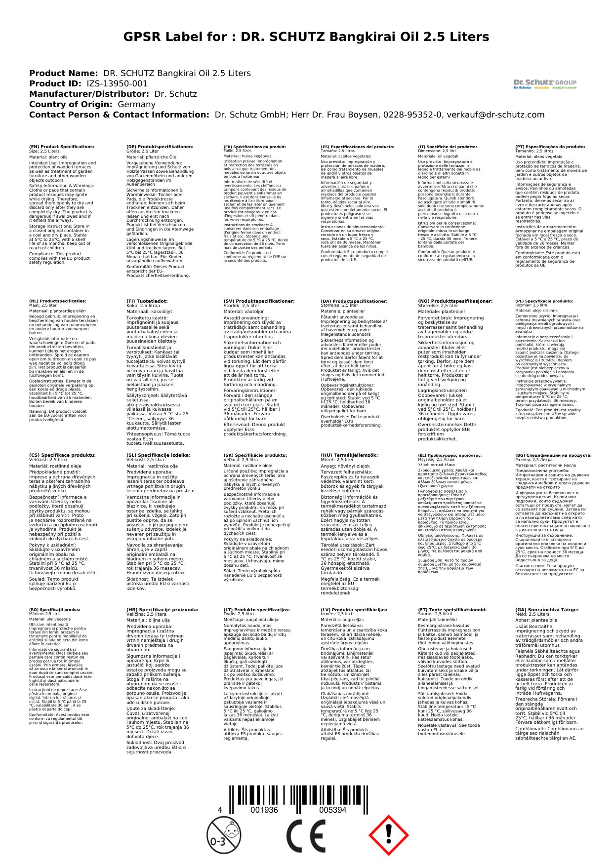Tá ár Ola Bangkirai deartha go speisialta chun adhmad Bangkirai a chosaint agus a chothabháil. Leis an toirt 2.5 lítear, tá go leor ola agat le haghaidh roinnt cótaí. Cinntíonn an foirmliú speisialta go ndéantar an ola a ionsú go tapa agus go soláthraíonn sé cosaint fhadtéarmach. Tá sé seo tábhachtach duit mar go laghdaíonn sé go mór an iarracht a theastaíonn le haghaidh cúraim agus go leathnaíonn sé saolré do throscáin adhmaid.