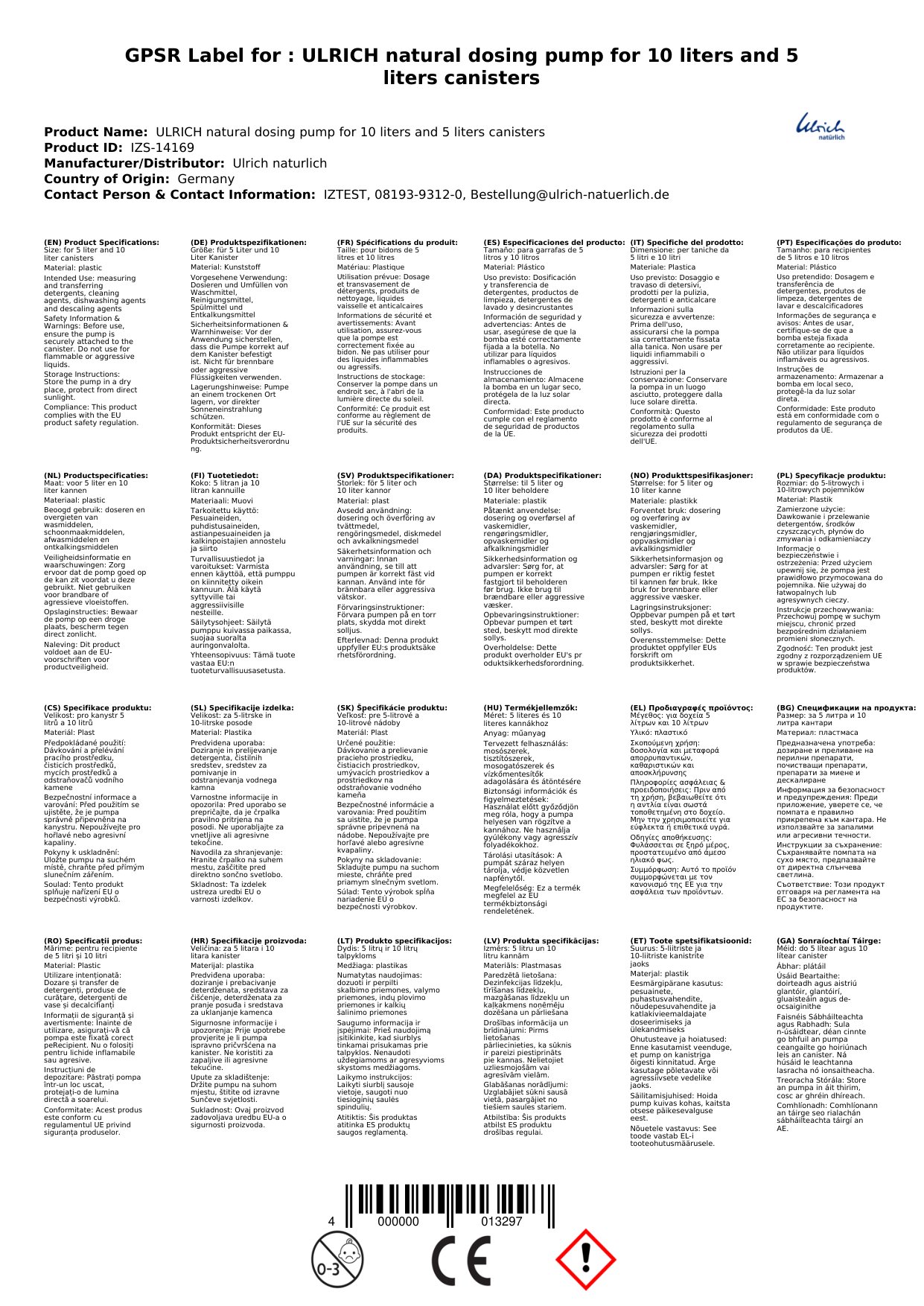 Tá an caidéal deartha go sonrach do channaí 5 lítear agus 10 lítear. B’fhéidir nach n-oireann sé do channaí eile.