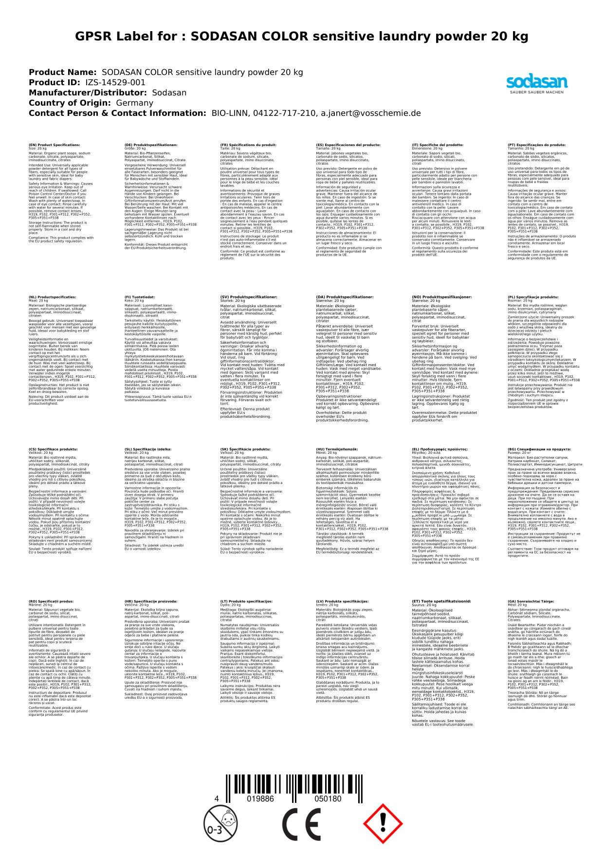 Nuair a cheannaíonn tú ár bpúdar níocháin dathanna íogair 20 kg ónár siopa, gheobhaidh tú: