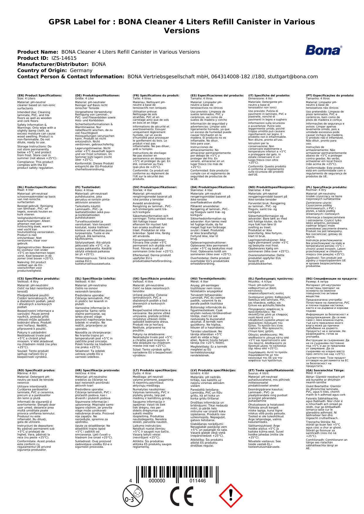 Cuir ceist chun níos mó a fhoghlaim faoin táirgeGlanadh Bona 4 Lítear, Athlíonadh, Glantóir Urláir, 4 Lítear Nachfüllkanister