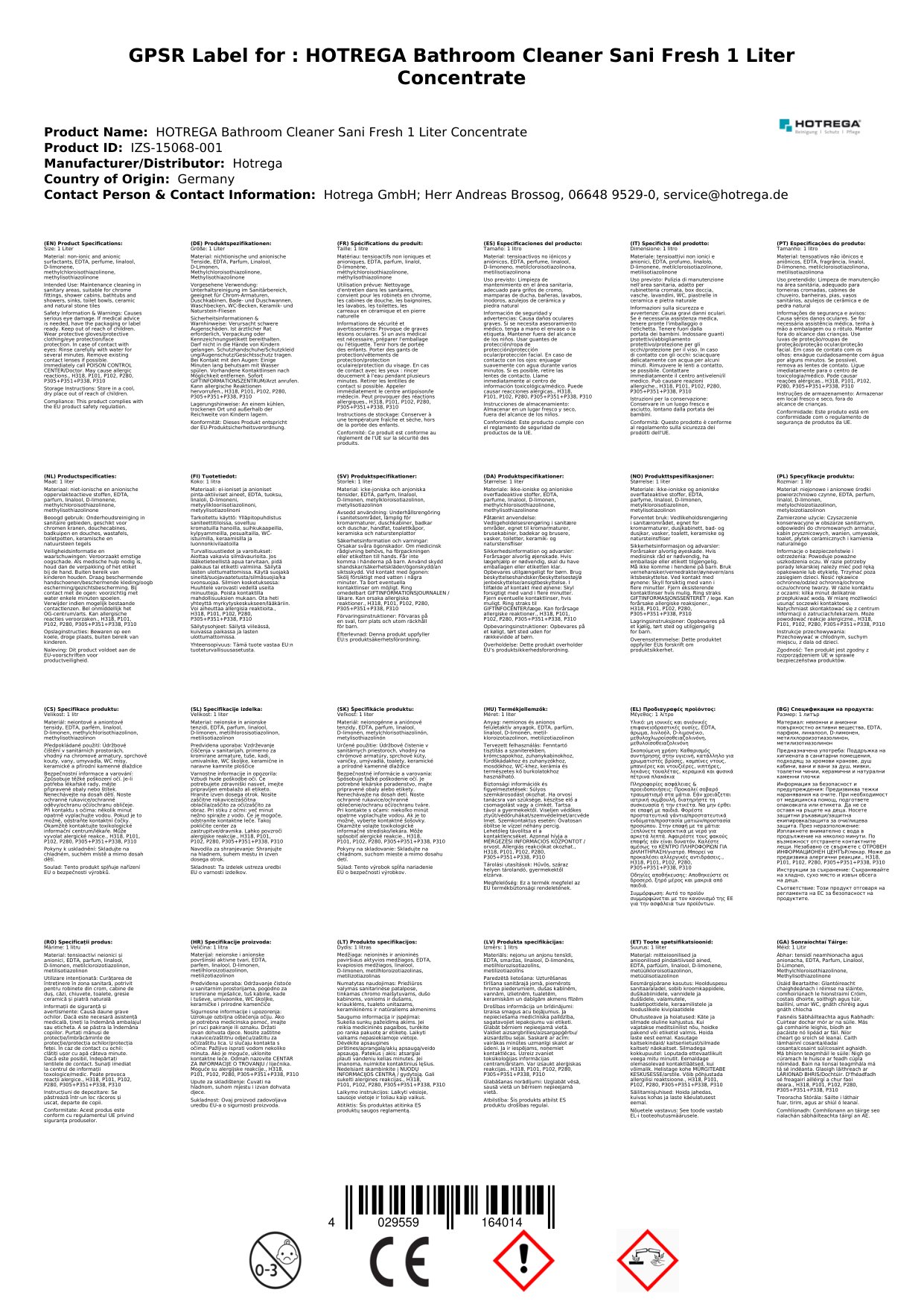 Tá Glantóir Seomra Folctha Sani-Fresh HOTREGA deartha chun aolchloch, scum gallúnaí agus smál uisce a bhaint go héifeachtach. Leis an bhfoirmle tiubhaithe, is féidir leat an neart a rialú don ghlanadh deiridh. Tá an táirge seo foirfe chun tíleanna, dabhcha folctha, cithfholcadáin agus faucets a ghlanadh, ag fágáil dromchlaí lonracha agus gan smál. Is féidir leat a bheith cinnte go bhfaighidh tú seomra folctha glan, athnuachana le gach úsáid.
