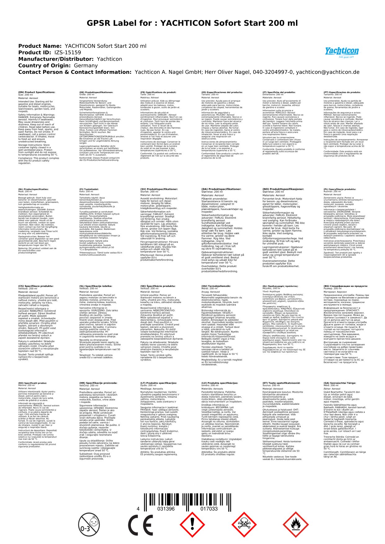 Rabhadh: Aicmiú de réir Rialachán (CE) Uimh. 1272/2008: H319 - Greamán tromchúiseach súl. H222 - Aerosól thar a bheith inadhainte.