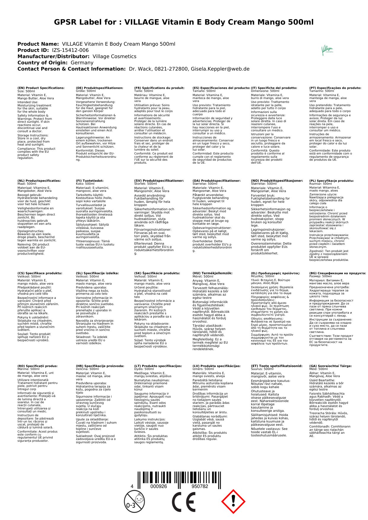 Cuir ceist chun níos mó a fhoghlaim faoin táirgeUachtar coirp mango, Lóis coirp Vitimín E, 500ml Körperlotion