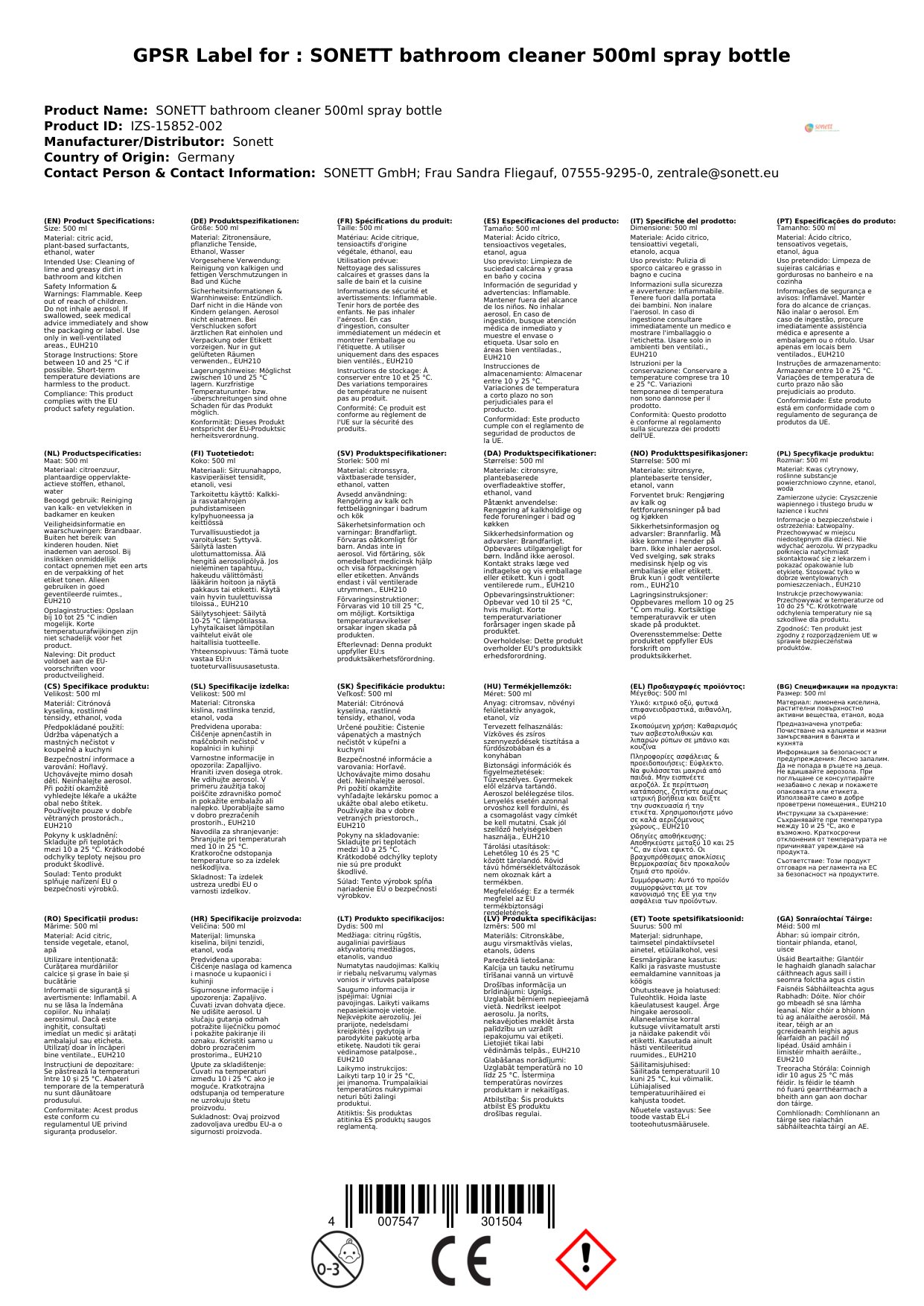Glanadh seomra folctha, Glanadh folctha, Spraeire 500ml