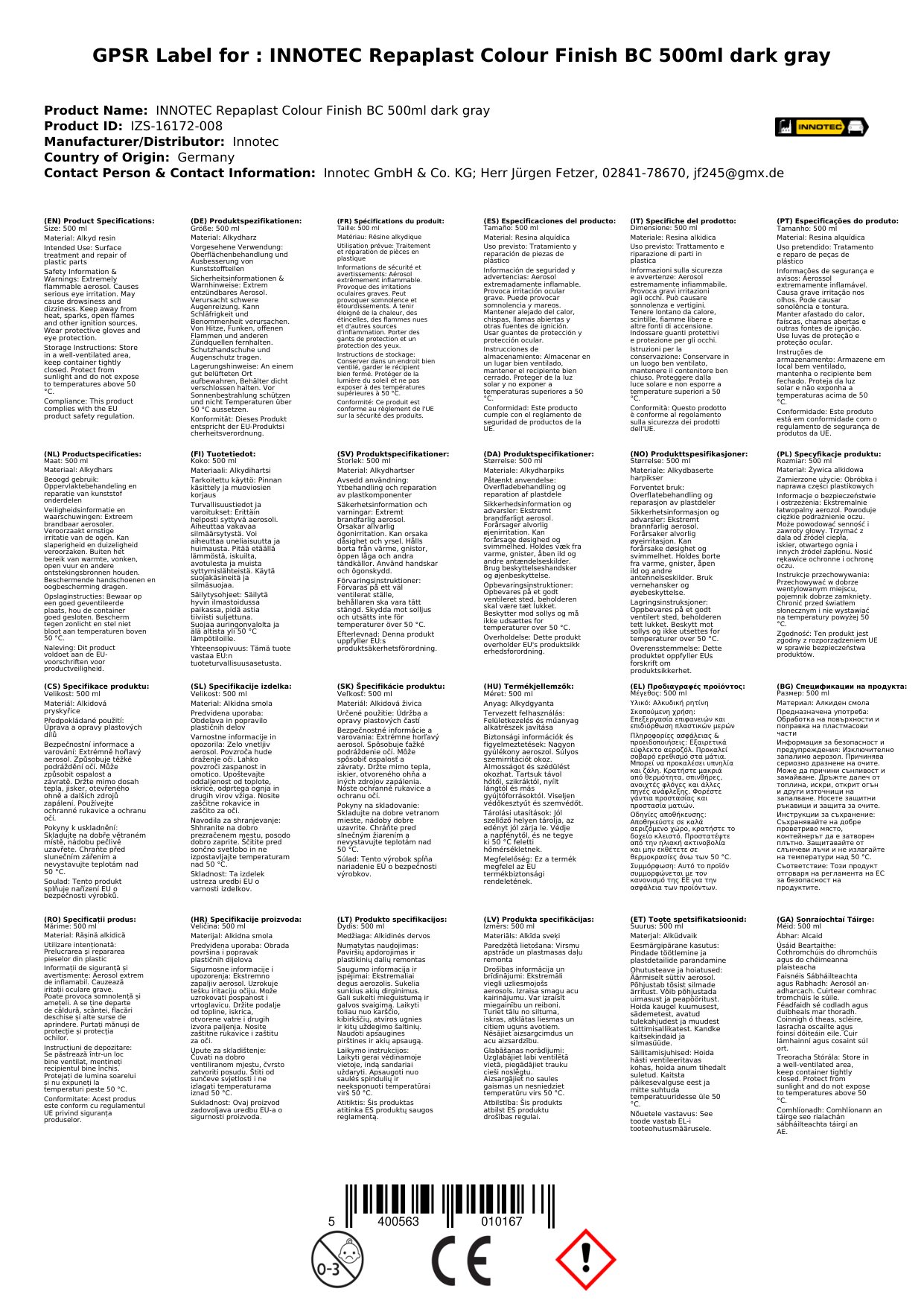 Cuir ceist chun níos mó a fhoghlaim faoin táirgeDathú Repaplast, Críochnú datha, Repaplast 500ml, liath dorcha