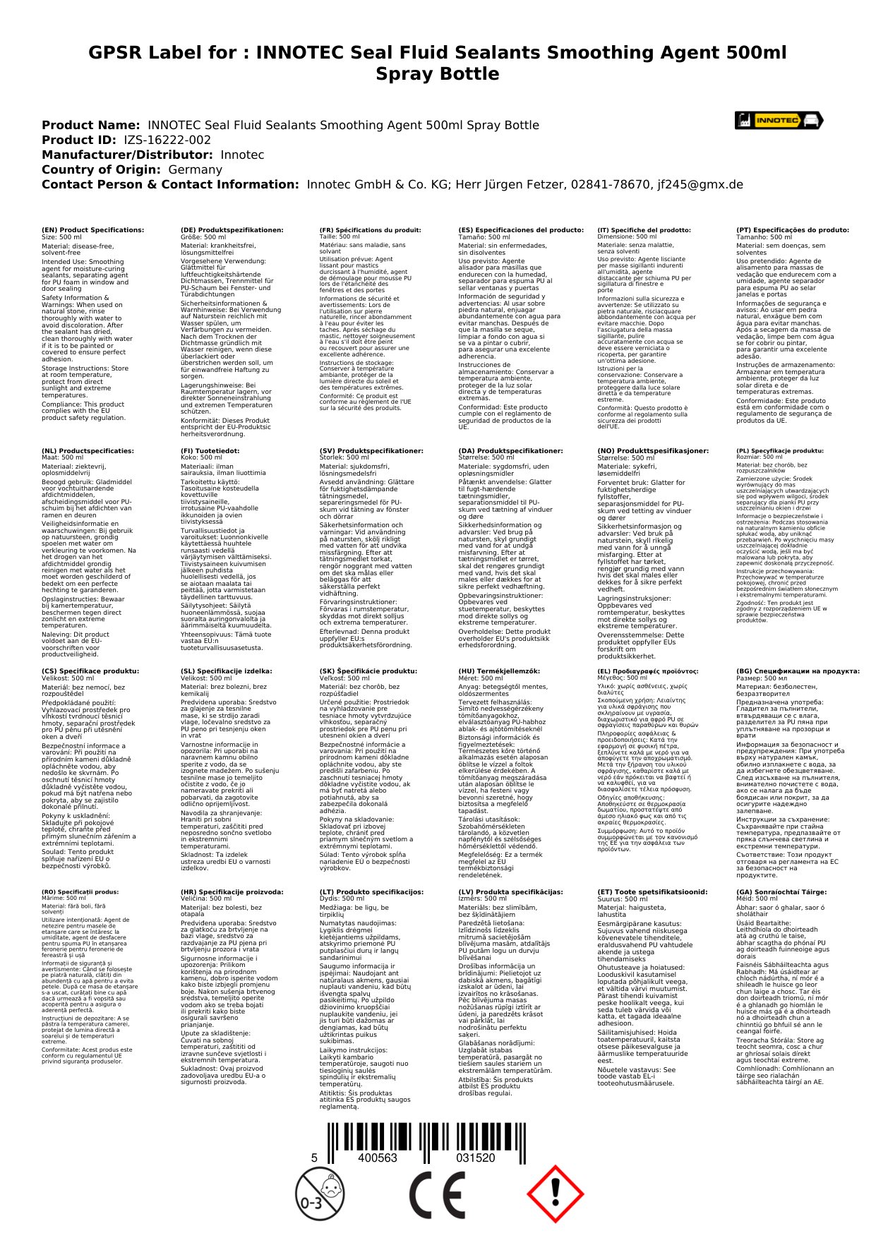 Cuireann ár Spraeire Séalaithe Innotec Seal Fluid réiteach éasca le húsáid ar fáil le haghaidh dromchlaí a shéalú agus a ghlanadh. Tá sé deartha go sonrach le haghaidh séalaithe uisce-bhunaithe agus oibríonn sé go héifeachtach ar dromchlaí éagsúla. Tá an buidéal spraeála caidéil 500ml áisiúil le haghaidh iarratas cruinn agus rialaithe. Tá sé seo tábhachtach duit mar go gcinnteoidh sé go mbeidh tú in ann do thionscadail a chur i gcrích go héifeachtach.