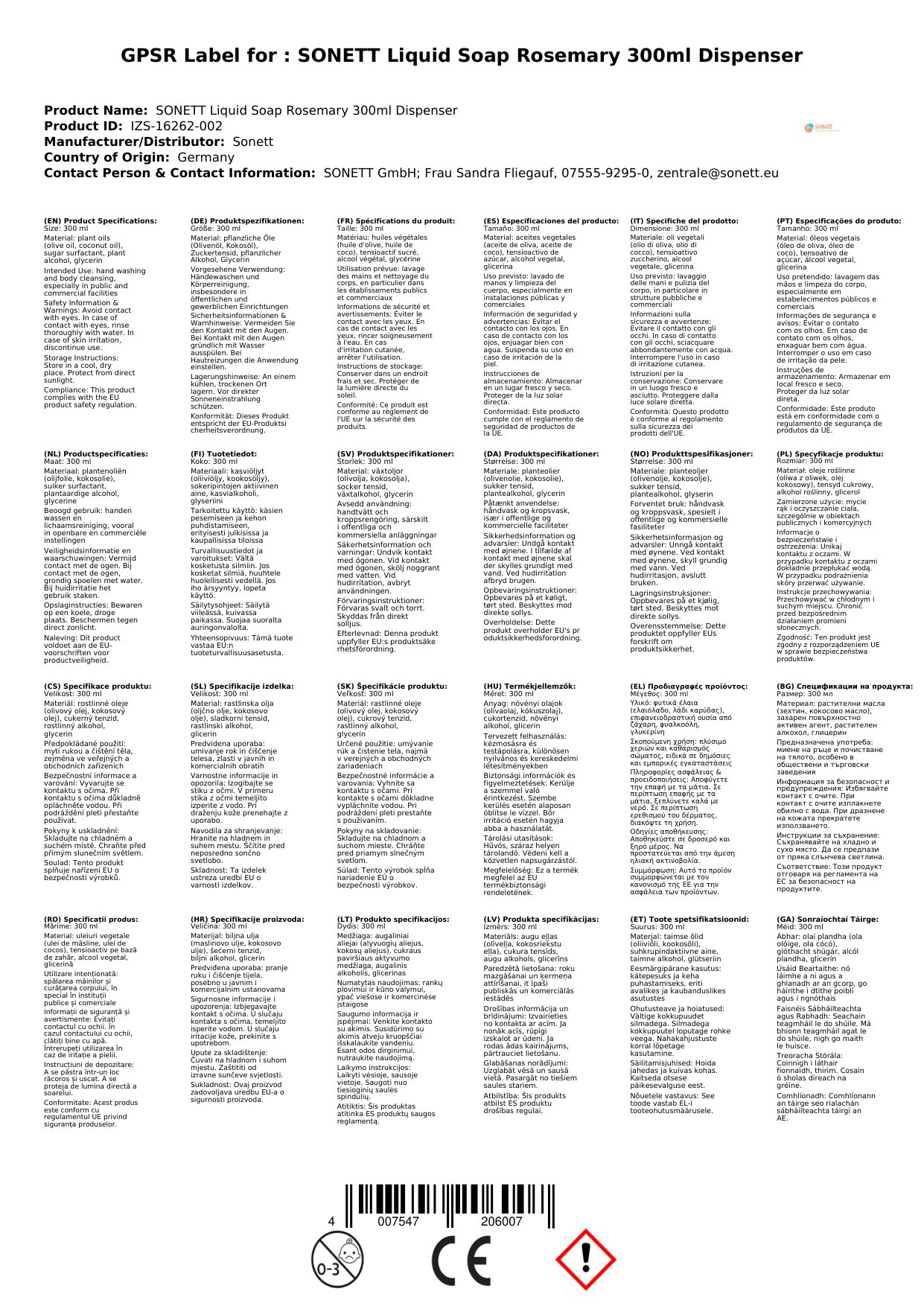 Cuir ceist chun níos mó a fhoghlaim faoin táirgeGallúnach láimhe Rosemary, Gallúnach spártha, 300ml Spender