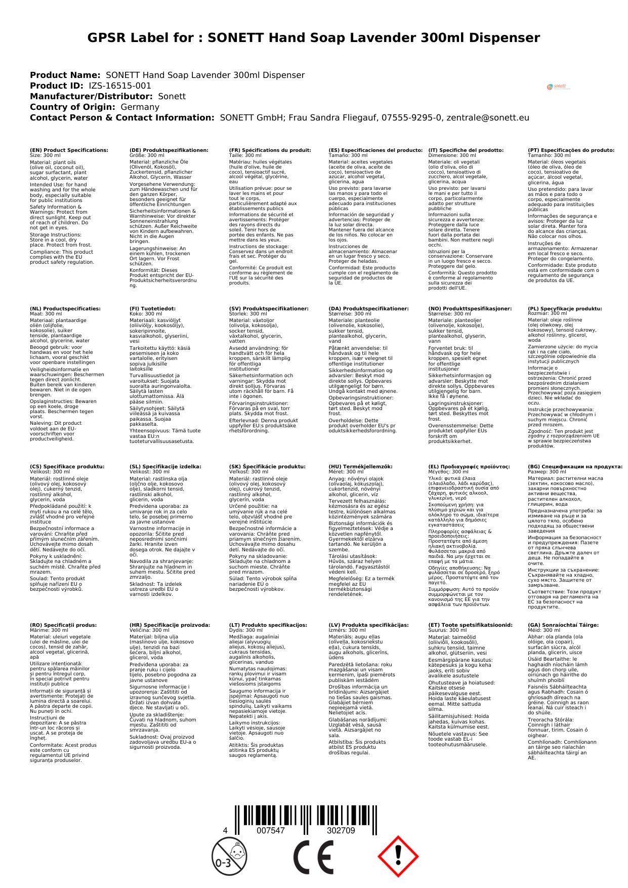 Cuir ceist chun níos mó a fhoghlaim faoin táirgeGallúnach láimhe, Gallúnach láimhe lavender, Gallúnach nádúrtha, Spraeire gallúnaí, 300ml Spender