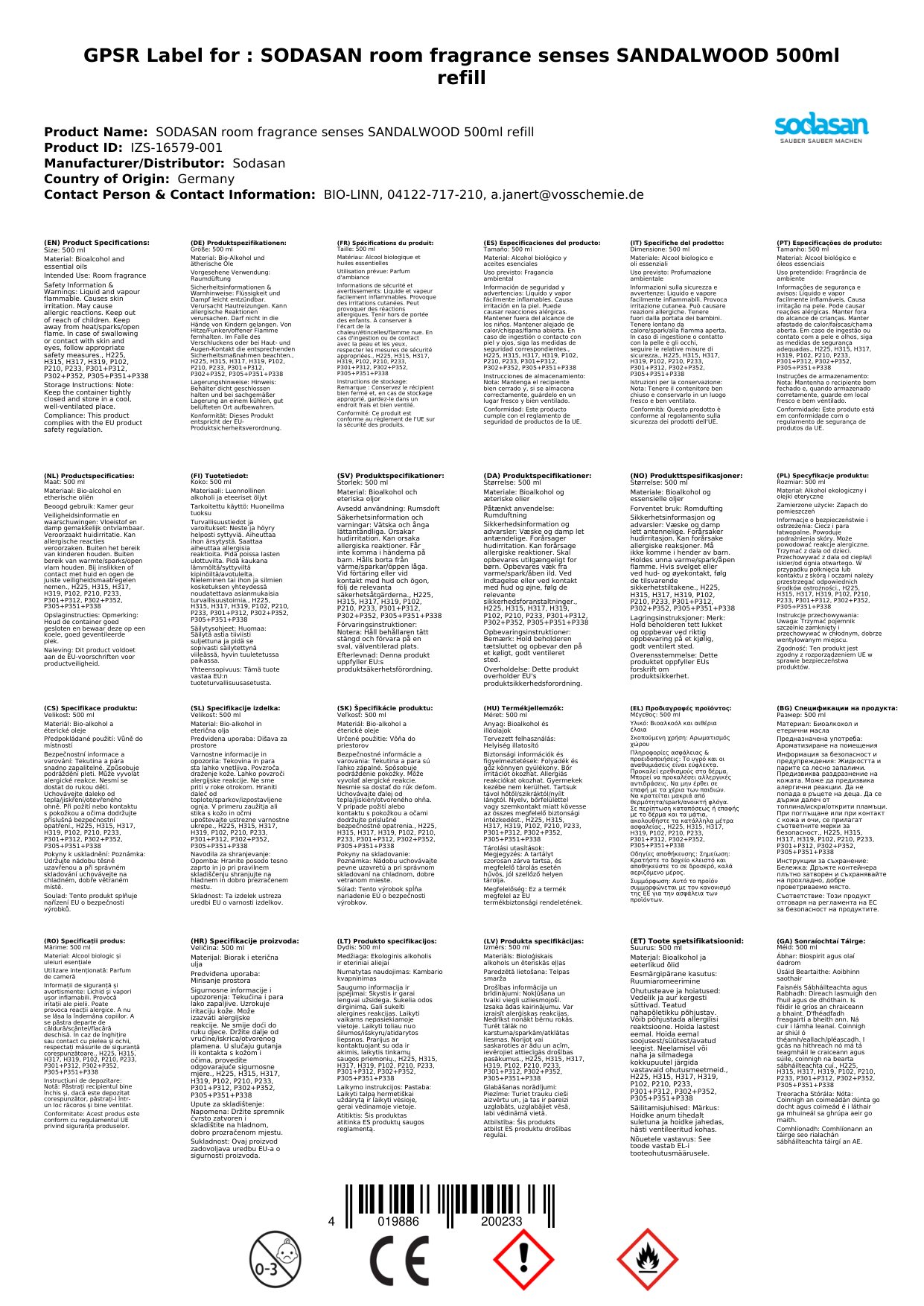 Rabhadh: D’fhéadfadh imoibriú ailléirgeach craicinn a bheith ann. Leacht agus gal inlasta.