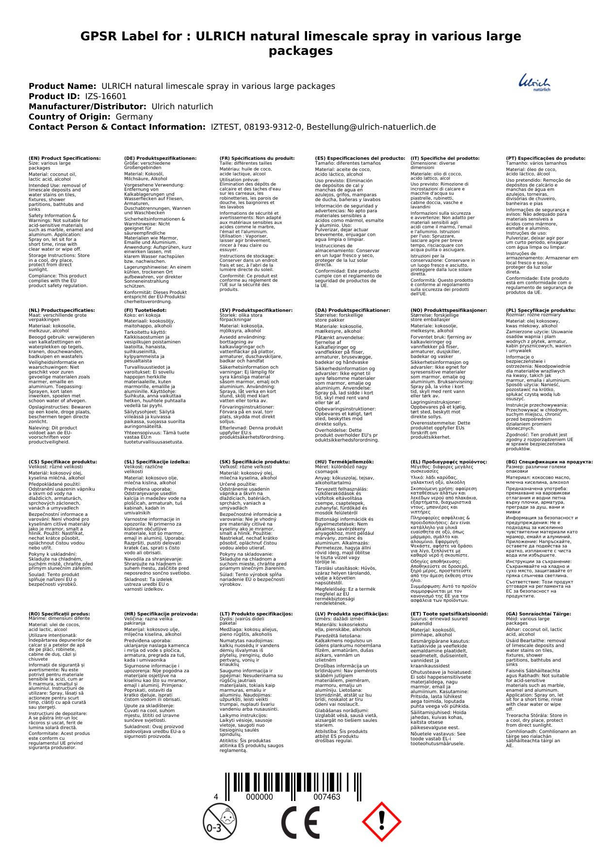 Dearadh ár sprae frith-aolchloiche chun aolchloch a bhaint go héasca ó dhromchlaí éagsúla. Tá sé oiriúnach le húsáid ar sconnaí, tíleanna, agus fiú i do theach gloine. Le foirmle chumhachtach, baintear aolchloch agus taiscí mianracha go héifeachtach, rud a fhágann dromchlaí glan agus lonrach. Tá sé simplí le húsáid: spraeáil, lig dó suí, agus wipe glan.