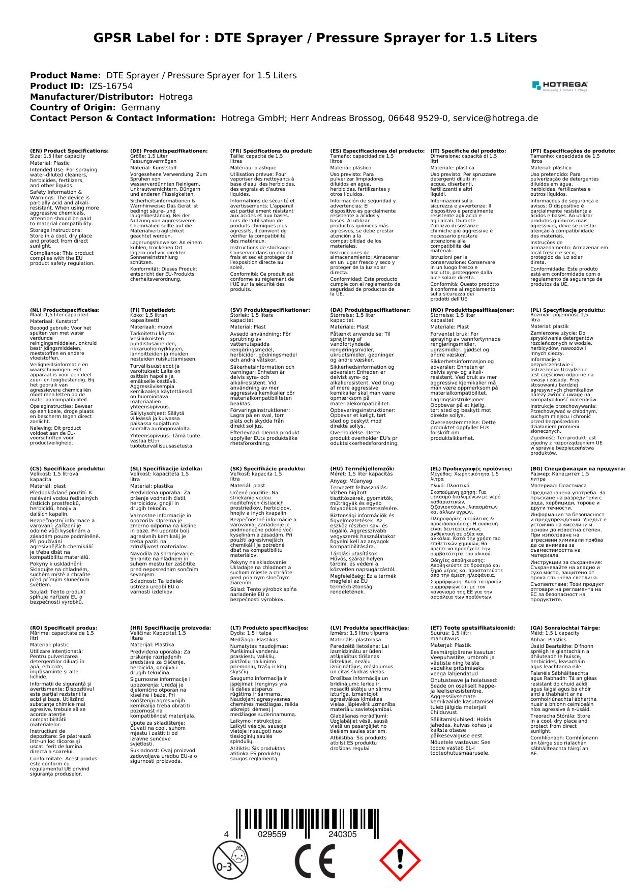 Nuair a cheannaíonn tú ár spraeire brú 1.5 lítear ón siopa againn, faigheann tú táirge ardchaighdeáin chomh maith le seirbhís den scoth.