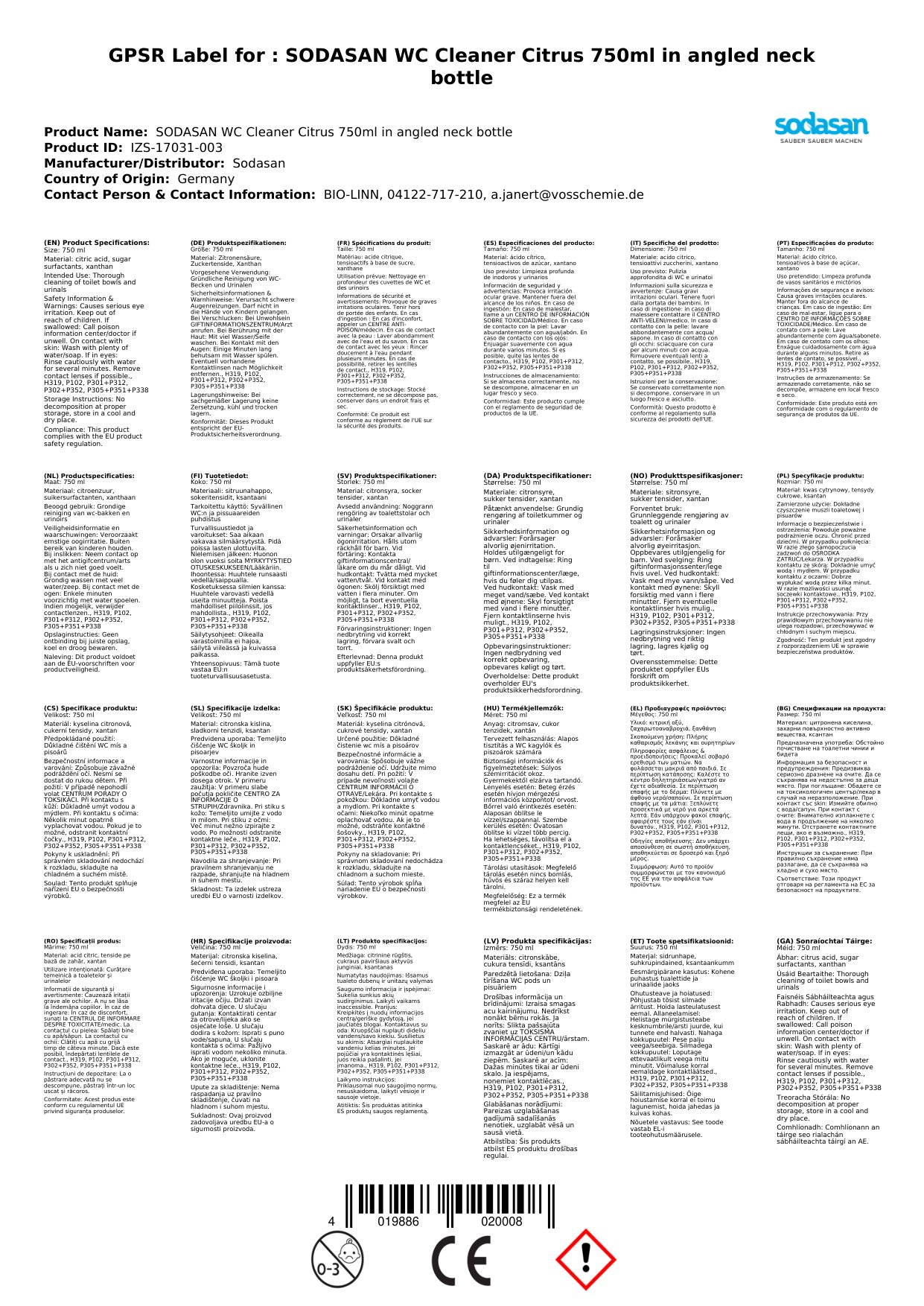 Cuir ceist chun níos mó a fhoghlaim faoin táirgeGlanadh Leithris Citrus, 750ml, Glanadh WC, Éicea-chairdiúil