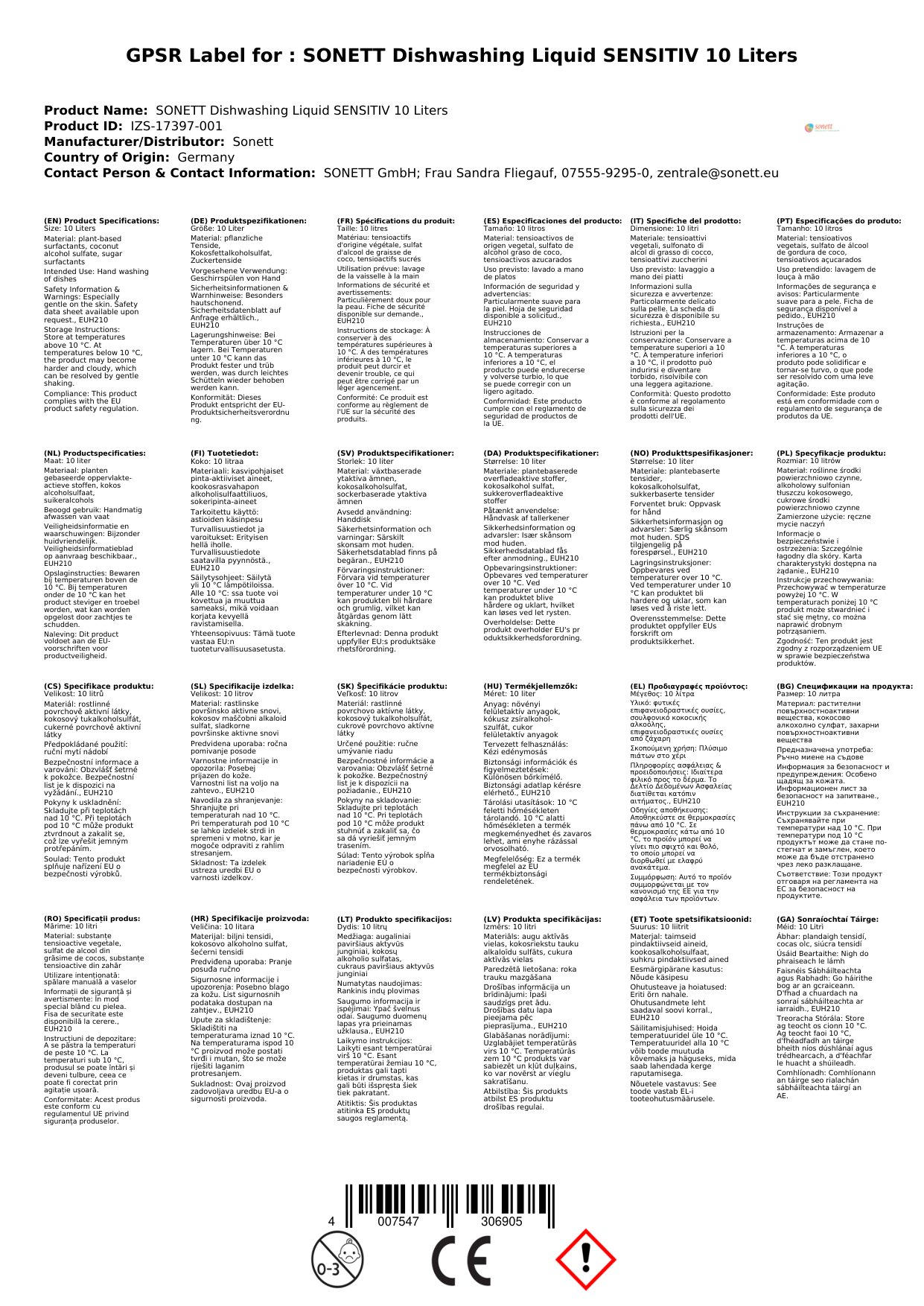 Cuir ceist chun níos mó a fhoghlaim faoin táirgeGallúnach miasniteoir íogair 10 Liter, leacht níocháin mias íogair, glanadh mias íogair