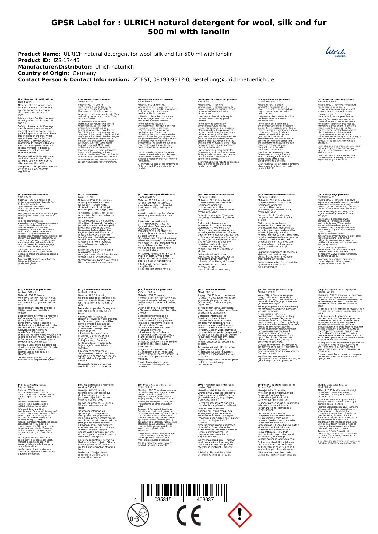 Cuir ceist chun níos mó a fhoghlaim faoin táirgeGlanadh olann, Glanadh síoda, 500ml, Gallúnach le Lanolin