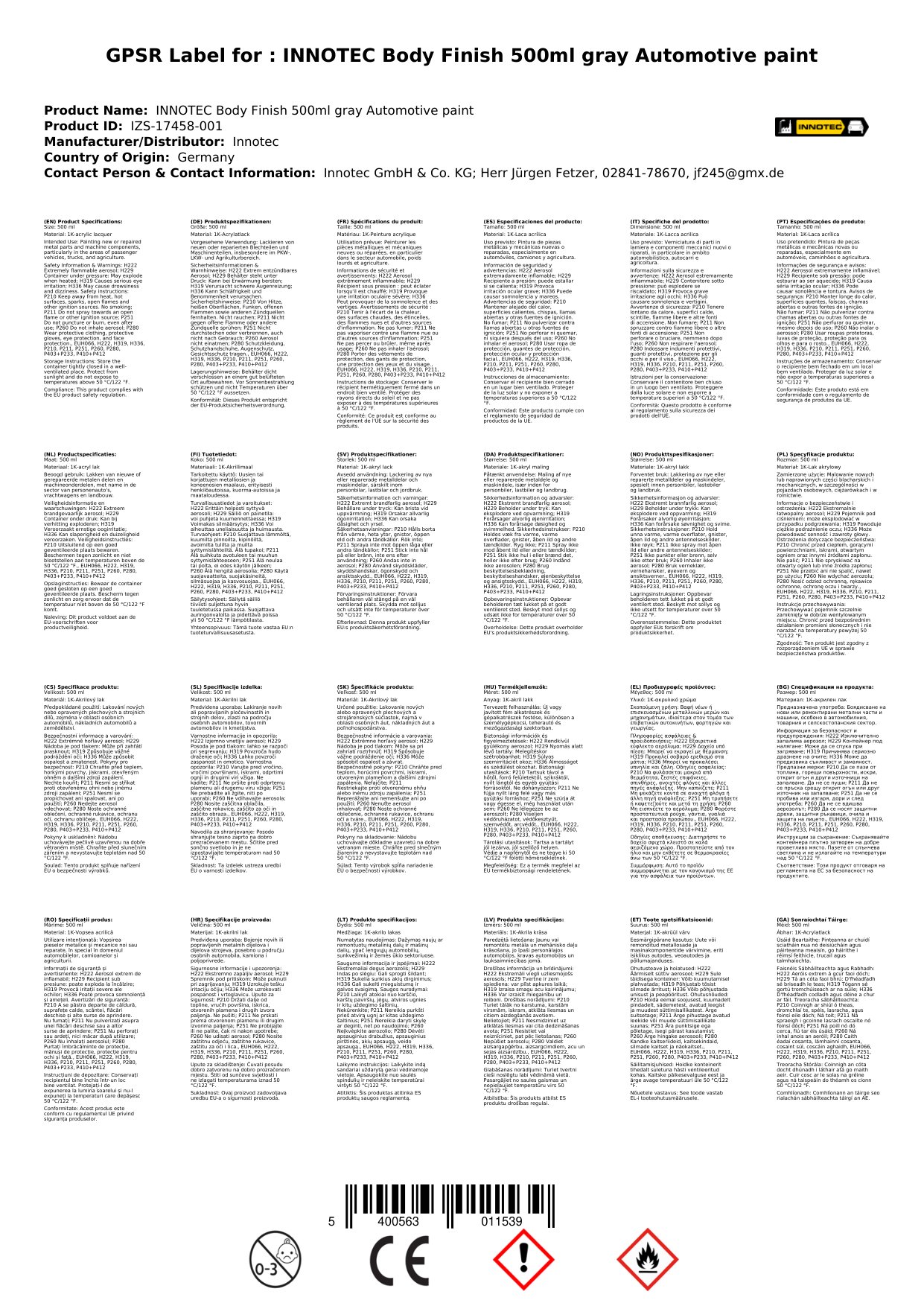 Soláthraíonn ár bpéint carranna críochnú coirp eisceachtúil do do charr. Le dath liath atá stylish, cuireann sé bailchríoch ghairmiúil ar fáil. Is féidir leat an péint sprae seo a úsáid chun deisiúcháin bheaga a dhéanamh nó dath nua a chur ar do charr. Tá an péint sprae seo tapa le triomú, rud a chiallaíonn gur féidir leat do thionscadail a chríochnú níos tapúla. Cén fáth a bhfuil sé seo tábhachtach duit: Is féidir leat cuma nua a chur ar do charr go tapa agus go héasca.
