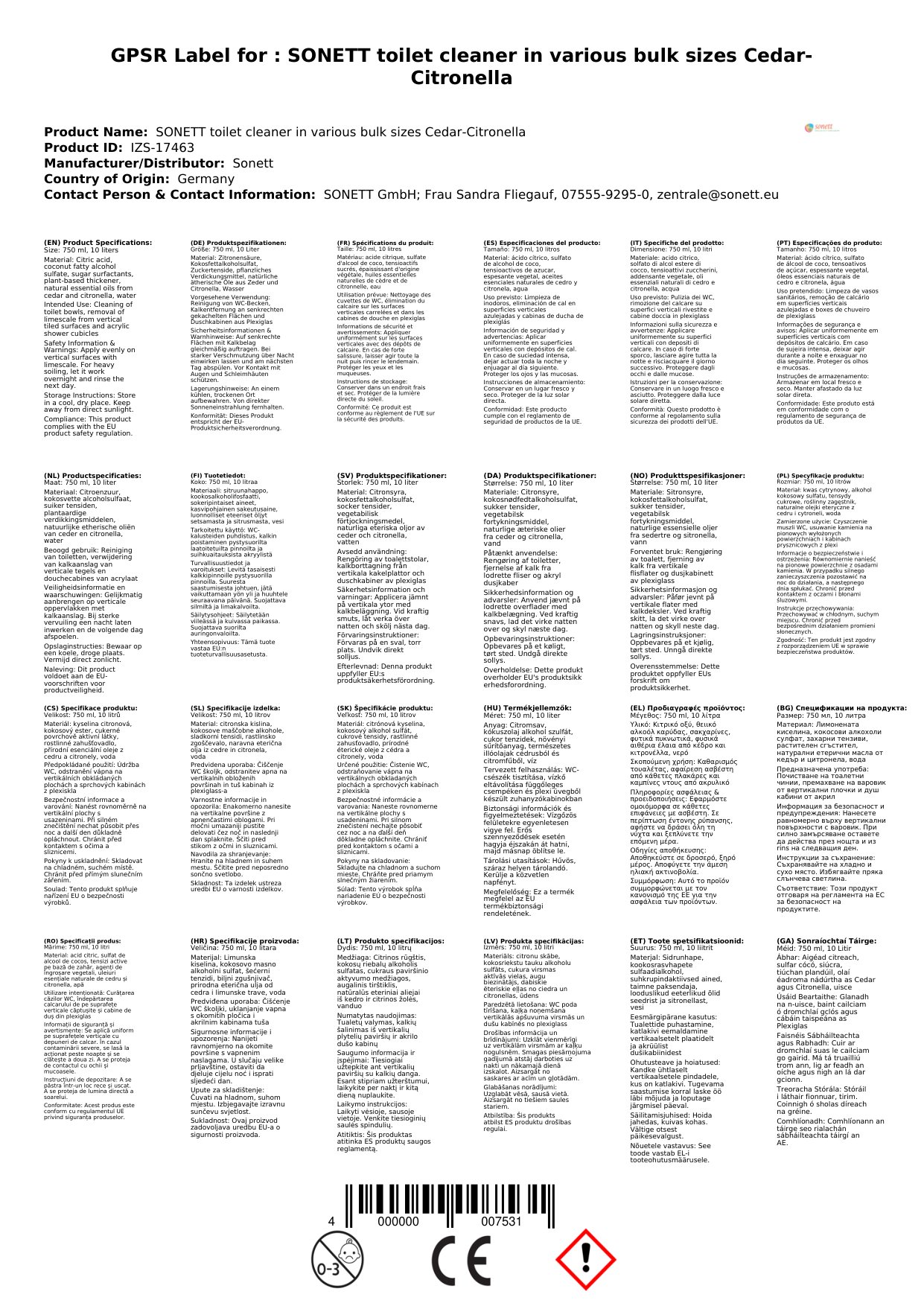 Ár nglanadh leithris nádúrtha boladh Cedar agus Citronella a chomhcheanglaíonn cumhacht glantacháin éifeachtach le comhábhair atá cairdiúil don chomhshaol. Tá an glantóir seo foirfe do dhaoine atá ag lorg táirge atá sábháilte don teaghlach agus don phláinéad. Bain taitneamh as leithreas glan agus úr gan ceimiceáin chrua a úsáid. Tá sé ar fáil i bpacáistí éagsúla.
