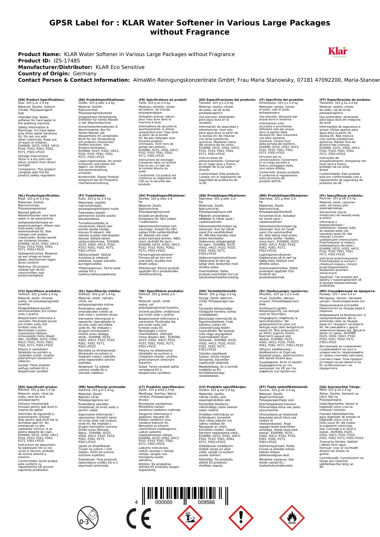 | Brand: | KLAR Eco Sensitive |