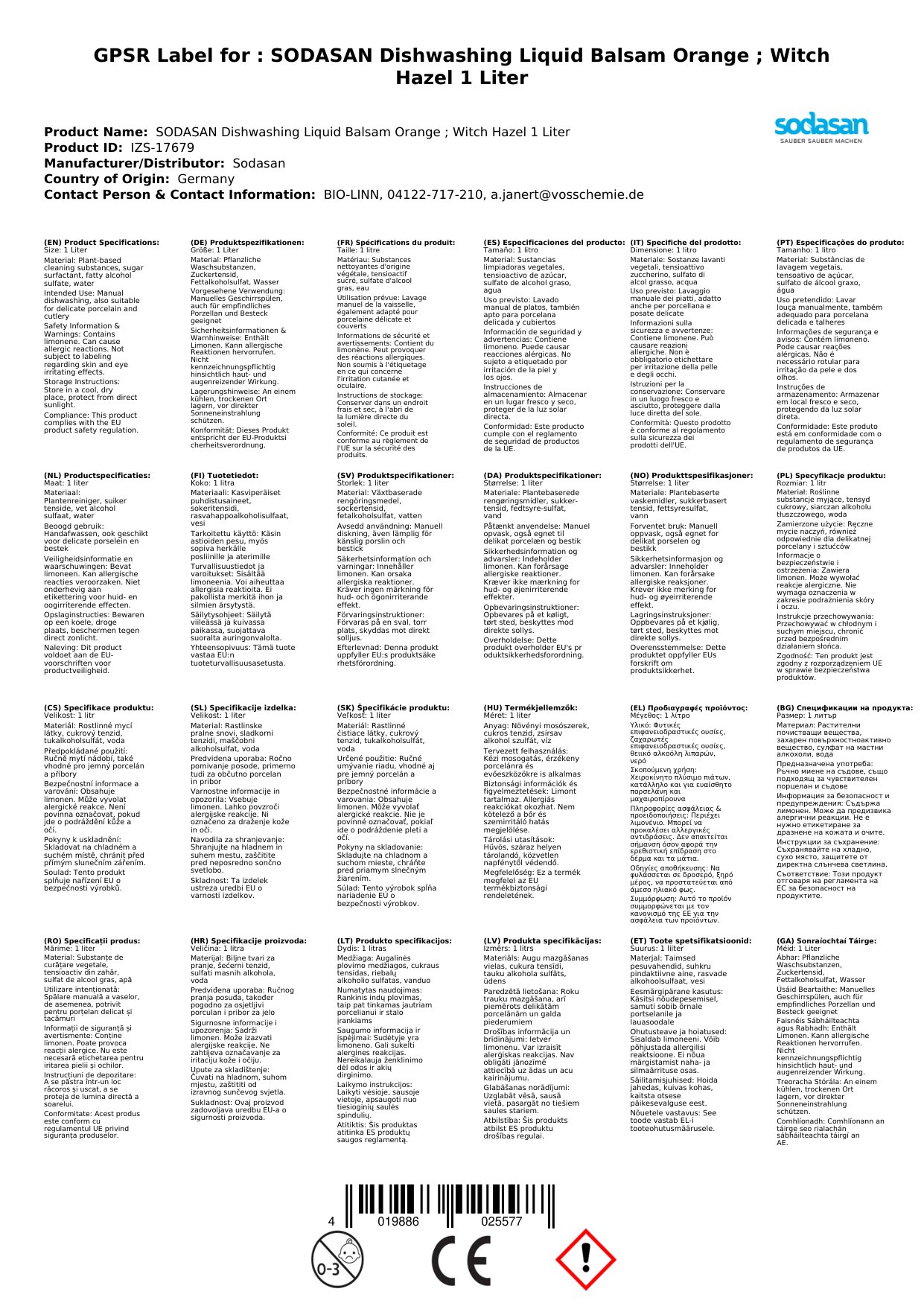Cuir ceist chun níos mó a fhoghlaim faoin táirgeLeacht níocháin mias, gallúnach mias nádúrtha, 1 L, Níochán Mias Íogair