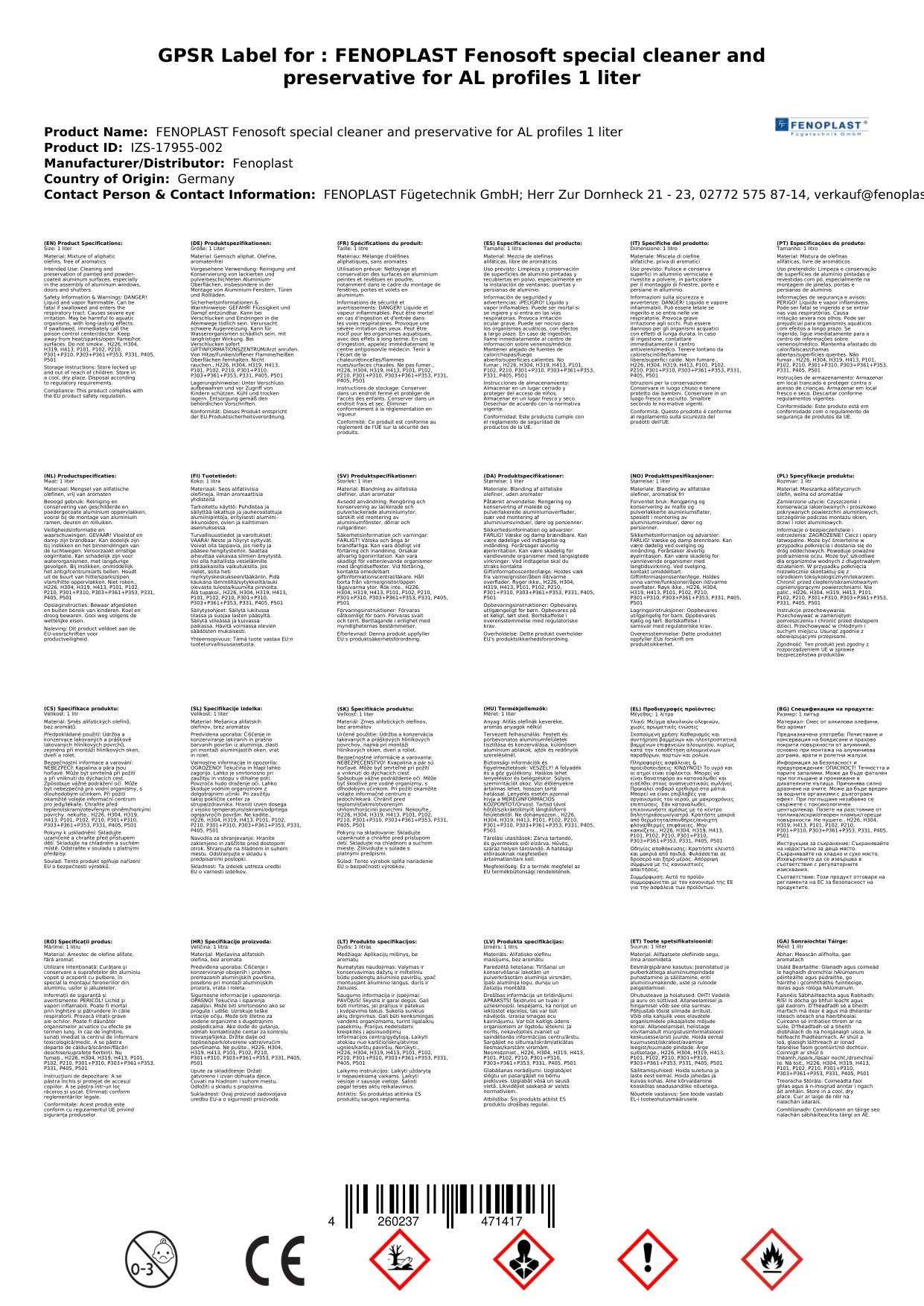 An bhfuil tú ag lorg réiteach éifeachtach chun próifílí alúmanaim a ghlanadh agus a chosaint? Tá ár nglantóir speisialta Fenoplast Fenosoft deartha go sonrach chun salachar, smál, agus ocsaídiú a bhaint go héasca. Soláthraíonn sé cúram fadtéarmach, ag cinntiú go bhfanann d’fhuinneoga, do dhoirse, agus do struchtúir alúmanaim ag breathnú nua. Leis an bhfoirmle 1 lítear, beidh go leor agat chun gach dromchla alúmanaim a ghlanadh agus a chothabháil.