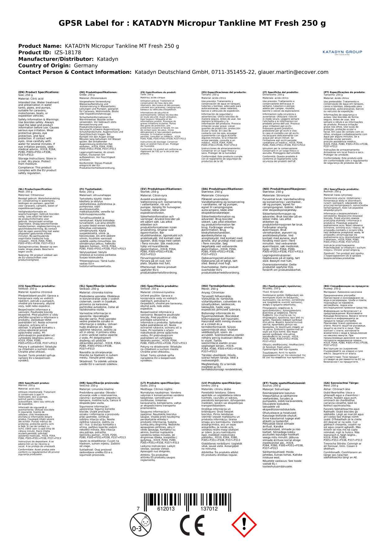 | Ainm Táirge | KATADYN Micropur Tankline MT Fresh |