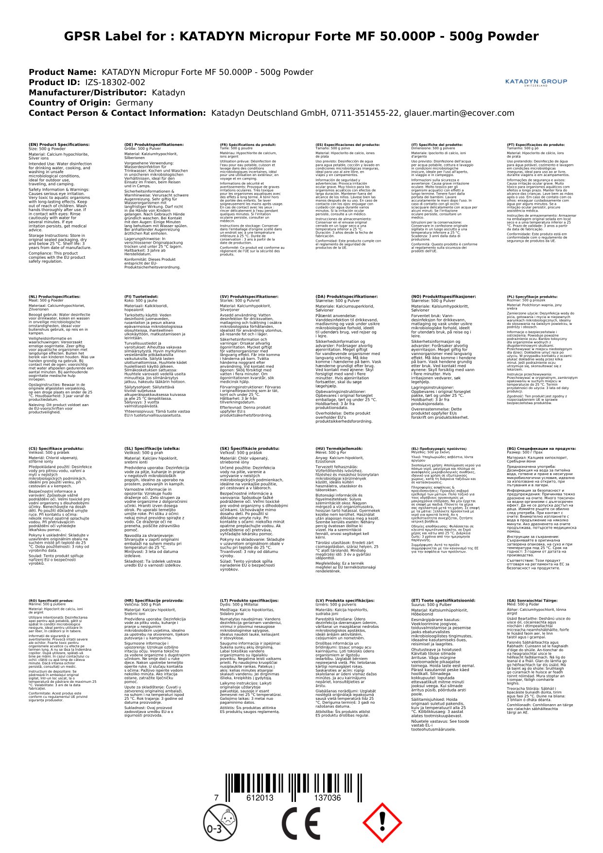 Dífhabhtán Uisce, Púdar cóireála uisce, Uisce óil sábháilte, 500g