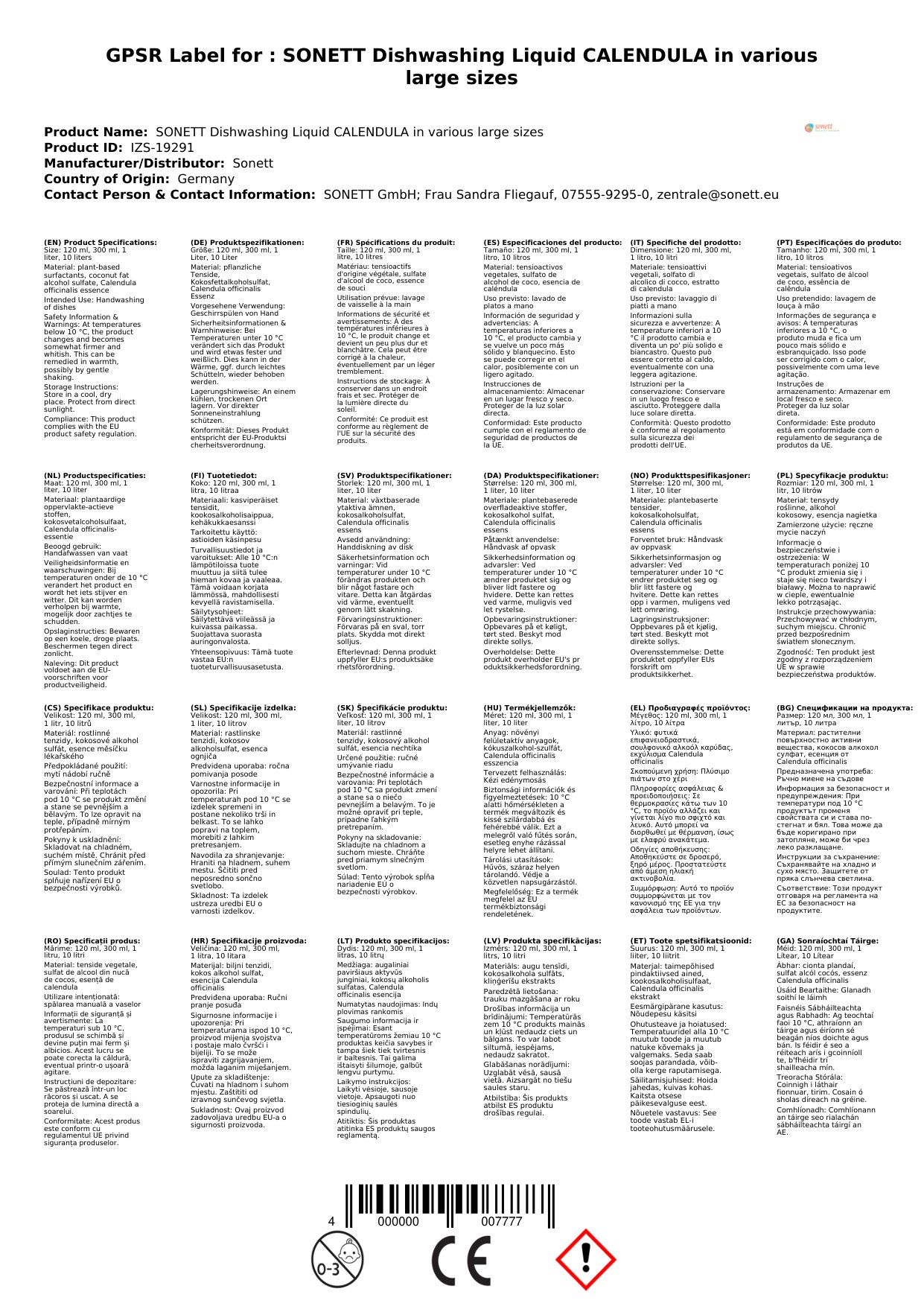 Tá ár Gallúnach mias Sonett, leacht níocháin mias calendula deartha chun miasa a ghlanadh go héifeachtach agus go nádúrtha. Tá sé déanta le comhábhair orgánacha agus tá sé milis ar do lámha. Is rogha iontach é seo má tá tú ag lorg táirge atá sábháilte don timpeallacht agus do do theaghlach. Tá sé ar fáil i méideanna éagsúla chun freastal ar do chuid riachtanas.