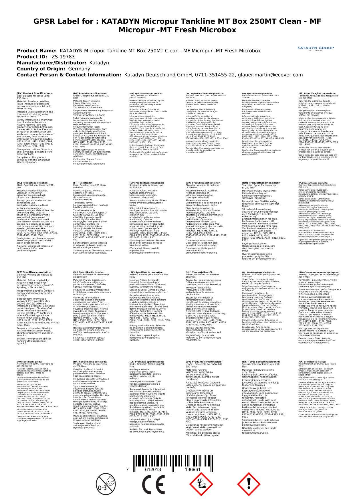 | Ainm Táirge | Micropur Tankline MT Box 250MT Clean |