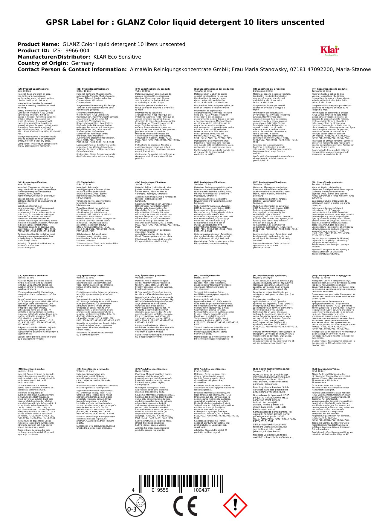 An bhfuil tú ag lorg glantach dathanna éifeachtach a chosnaíonn do chuid éadaí agus a chuidíonn leat airgead a shábháil? Tá ár glantach dathanna leachtach 10 lítear foirfe duit! Níl aon cumhrán ann, mar sin tá sé oiriúnach do dhaoine le craiceann íogair. Leis an bhfoirmle chumhachtach seo, gheobhaidh tú torthaí glantacháin den scoth i gcónaí.