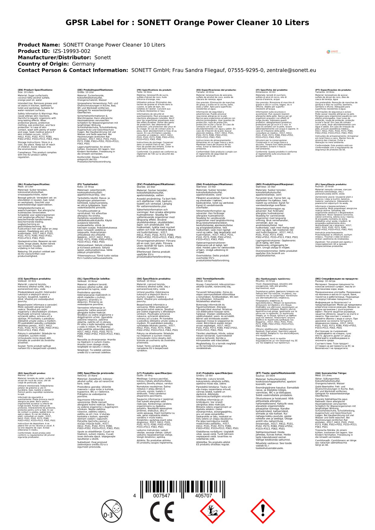 Glanadh láidir oráiste 10 Liter, Glanadh oráiste, Glanadh dromchla oráiste