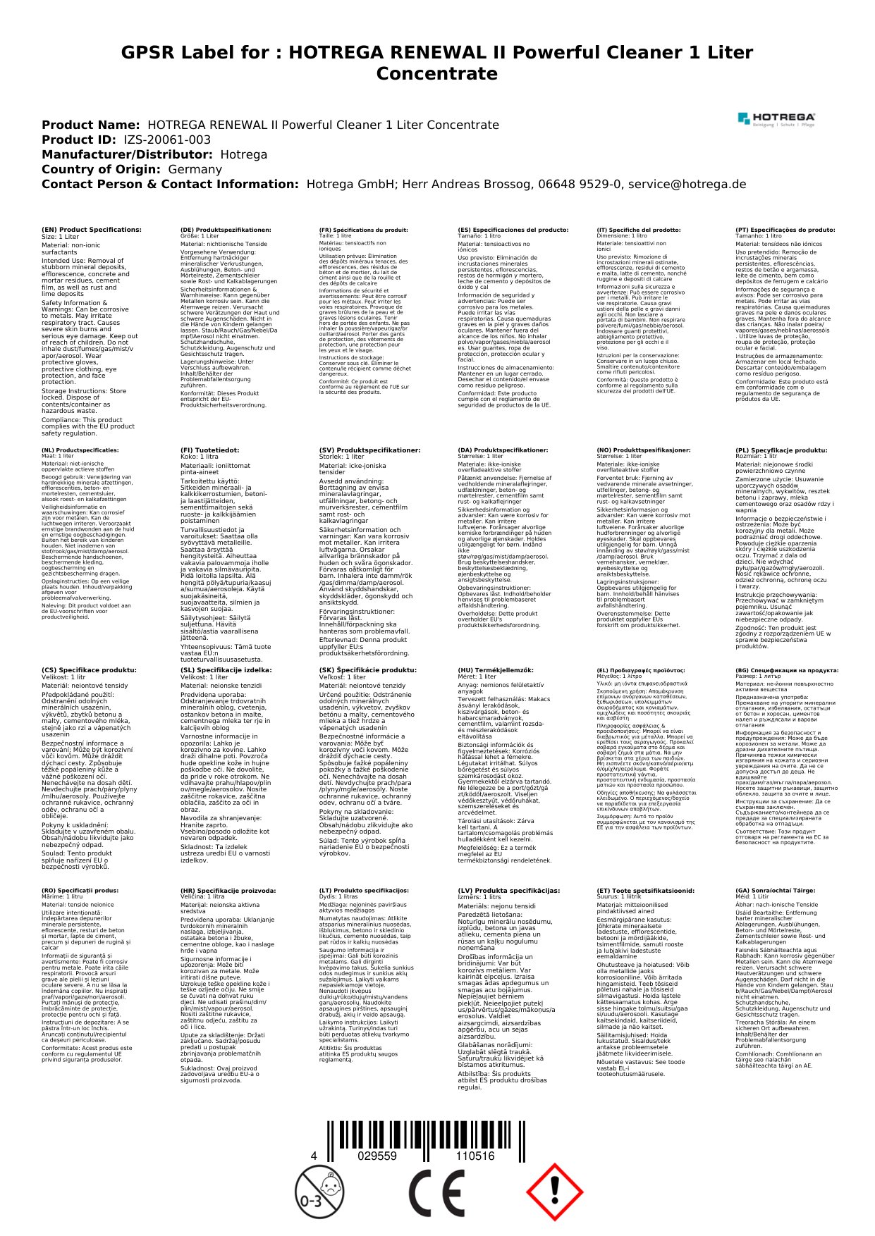 Cuir ceist chun níos mó a fhoghlaim faoin táirgeGlanadh cumhachtach, Glanadh Tiubhaithe, Glanadh Tionsclaíoch, 1 Lítear Konzentrat