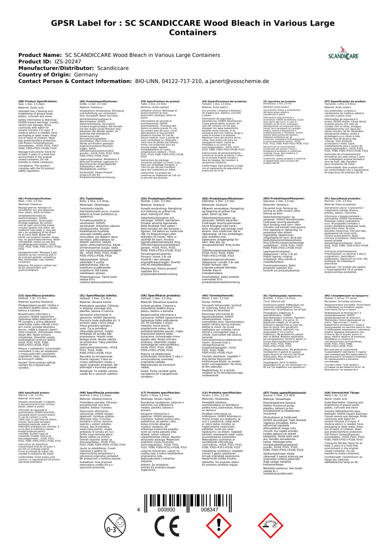 Contúirt: Aicmiú de réir VO 1272/2008: H302 - Díobhálach má shlogtar. H318 - Is cúis le damáiste tromchúiseach súl.