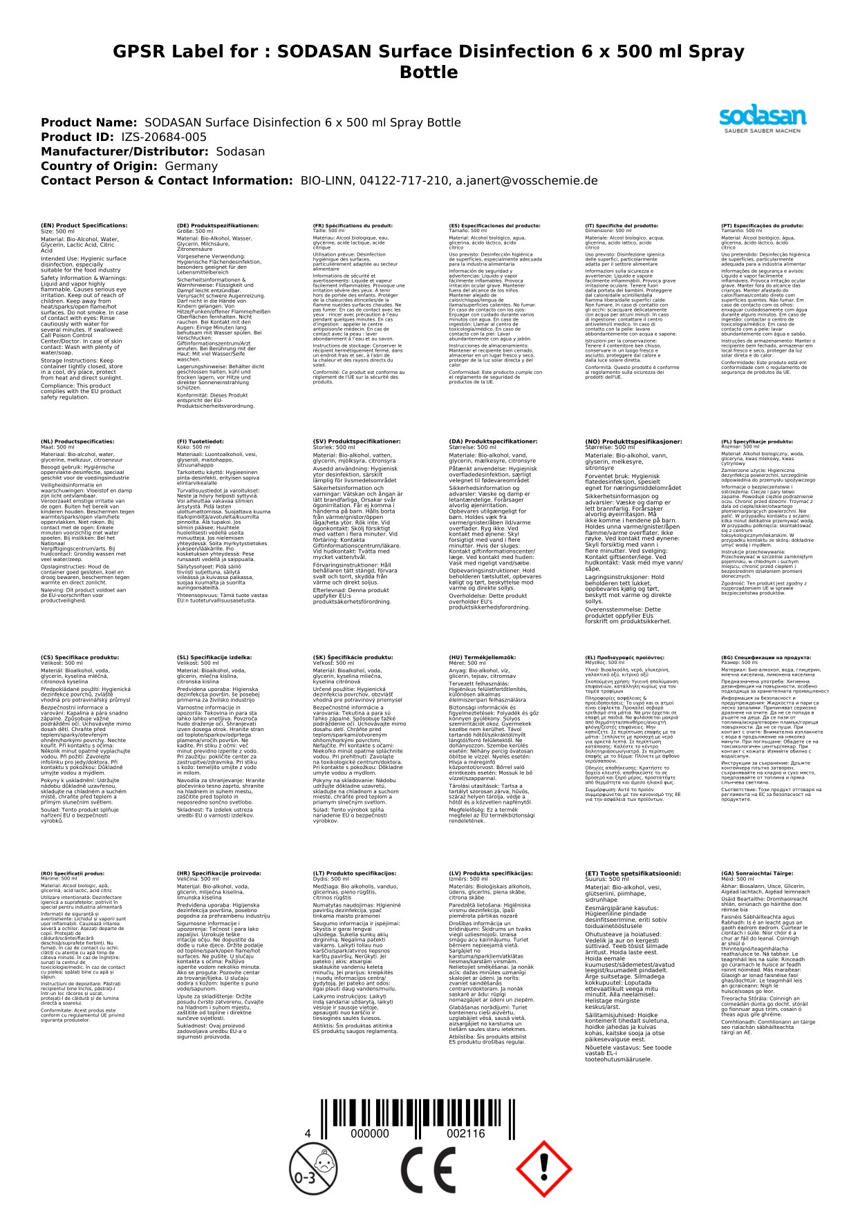 - Pacáiste Mór: Le 6 bhuidéal 500ml, tá go leor dífhabhtáin agat chun dromchlaí a choinneáil glan ar feadh tréimhse fada.