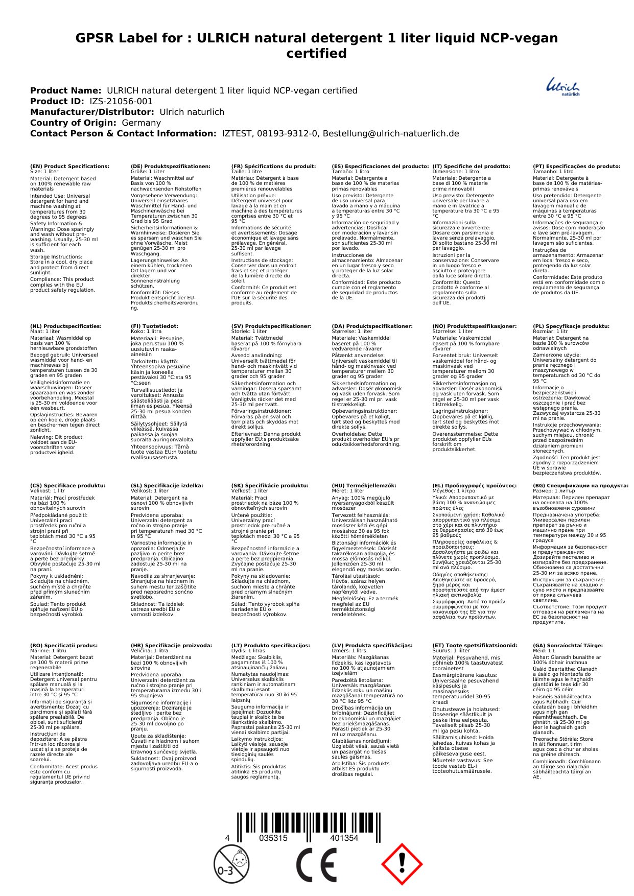 An bhfuil tú ag lorg glantach níocháin atá éifeachtach, cairdiúil don chomhshaol, agus sábháilte do do theaghlach? Tá ár nglantach níocháin nádúrtha agus vegan foirfe duit. Glanann sé d'éadaí go héifeachtach agus tá sé saor ó cheimiceáin chrua. Bain triail as inniu agus féach an difríocht!