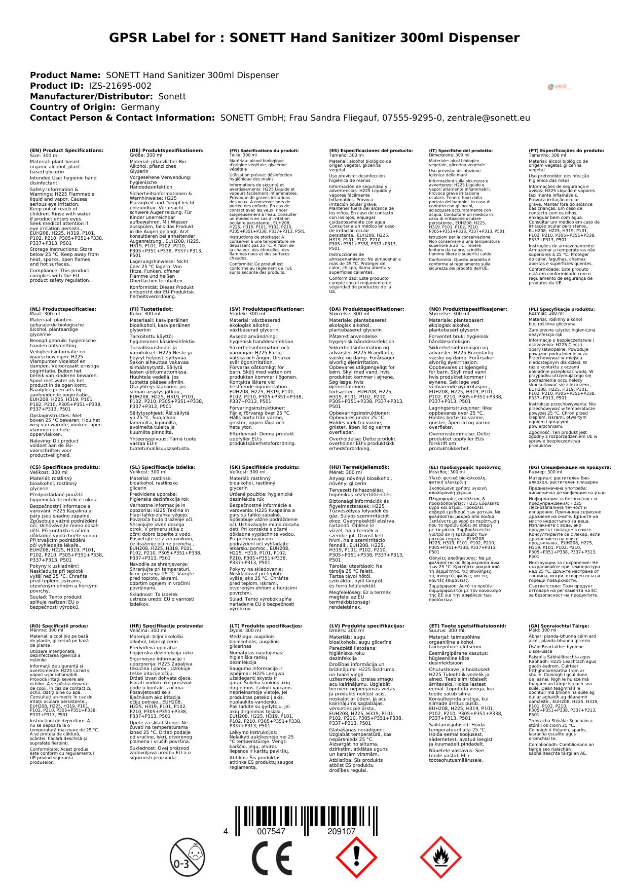 - Éifeachtach i gcoinne Baictéar: Maraíonn sé 99.9% de na baictéir, ag cinntiú cosaint láimhe éifeachtach.
